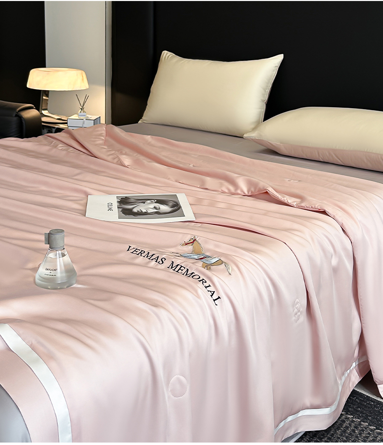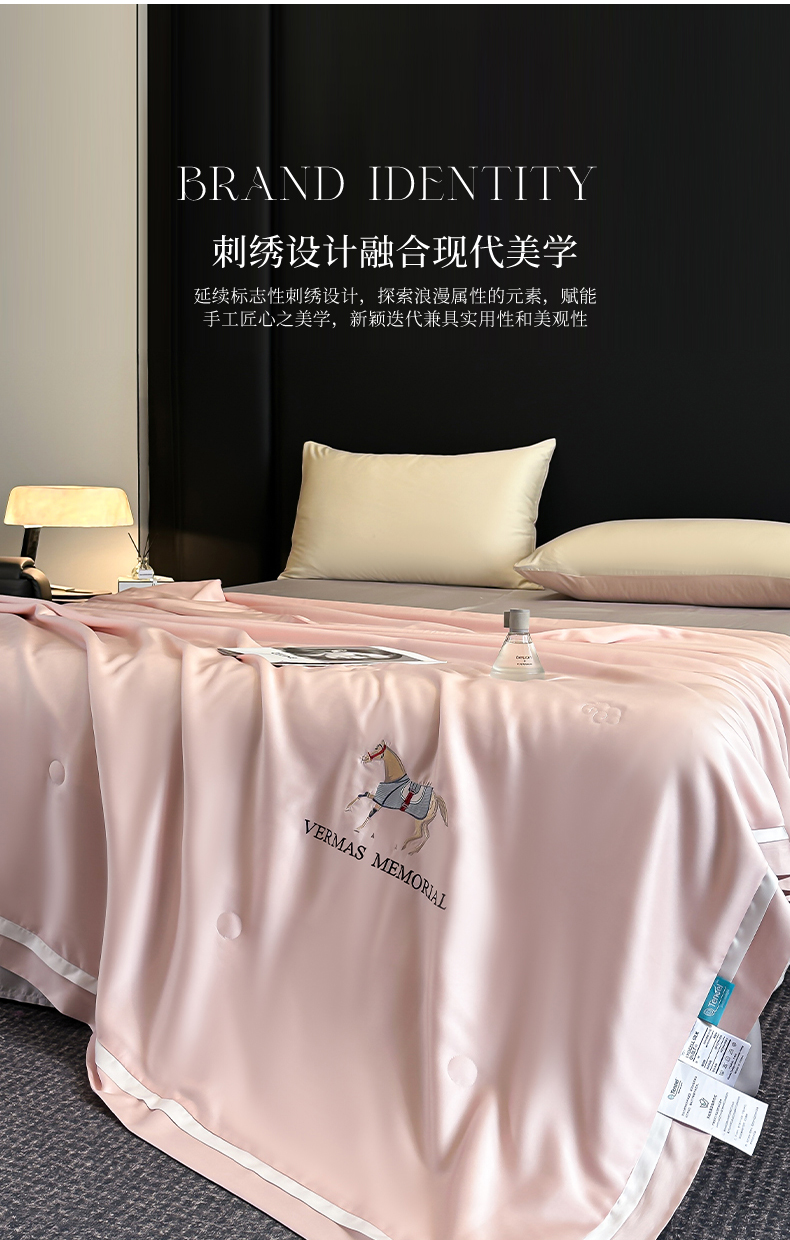 商品名称:薇玛仕 2025新款绣花款80支兰精天丝可水洗蚕丝夏凉被空调被 倩影粉