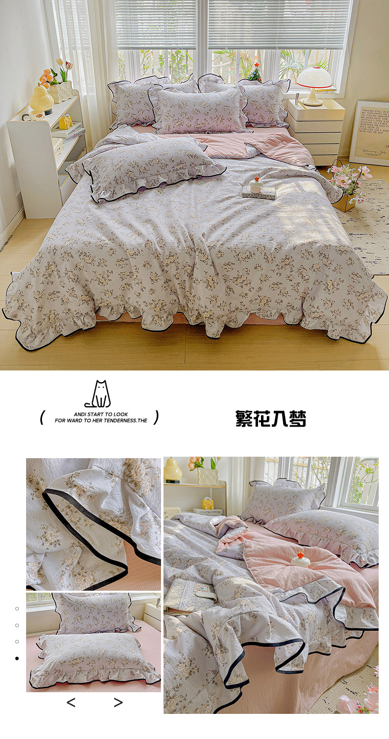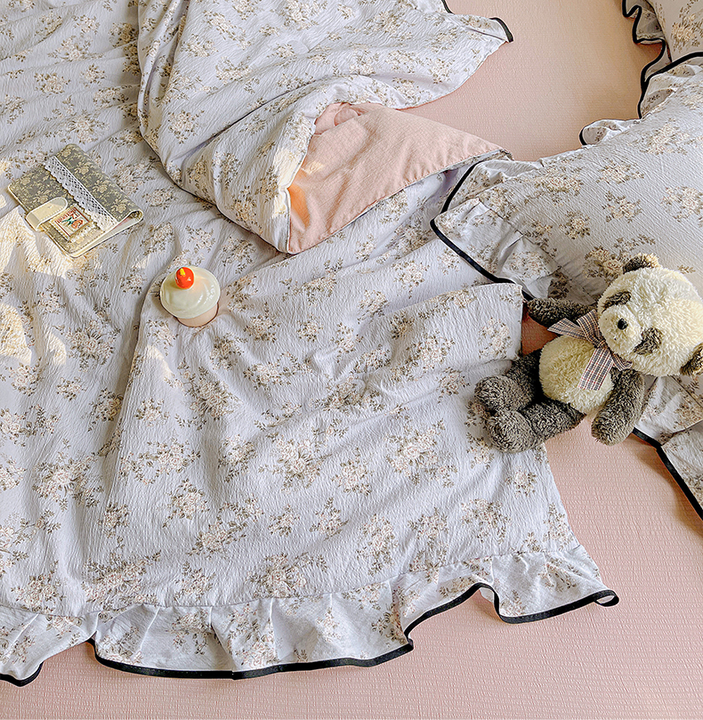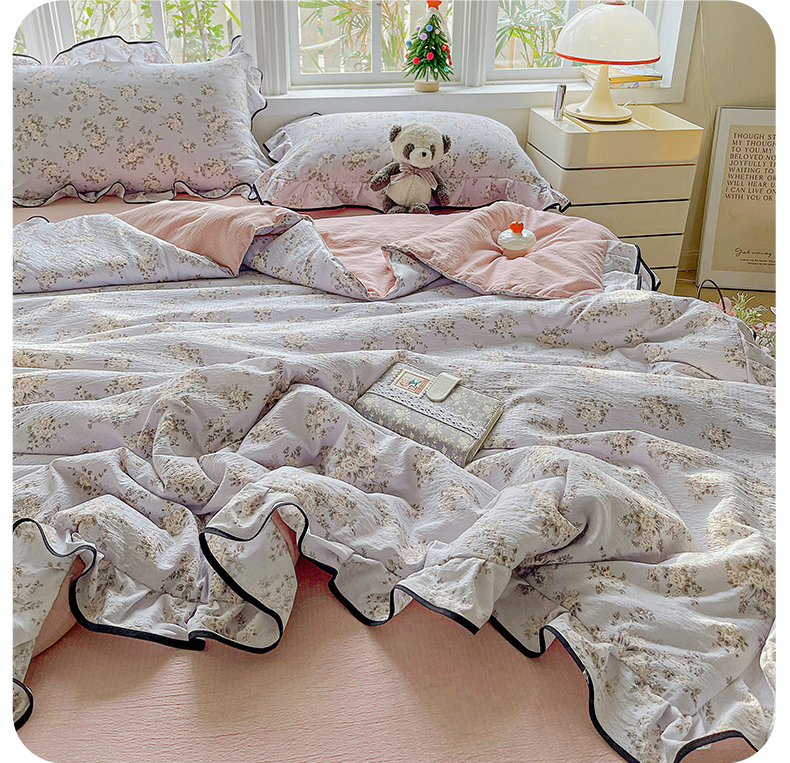• 91家纺网 家纺一手货源 找家纺 暖芯优选 2025(优选)新款皱皱双层纱荷叶大花边夏被空调被夏凉被三件套 繁花入梦