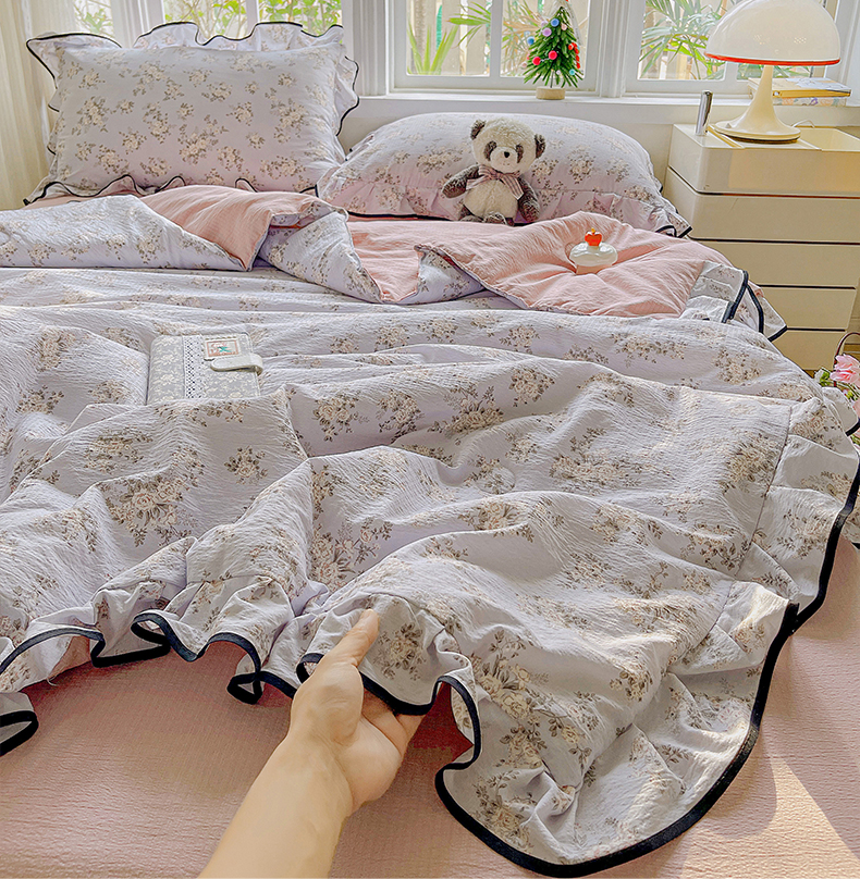 当前位置: 91家纺网 > 商品网购 > 被子 > 夏被 > 暖芯优选 2025(优选)新款皱皱双层纱荷叶大花边夏被空调被夏凉被三件套 繁花入梦
