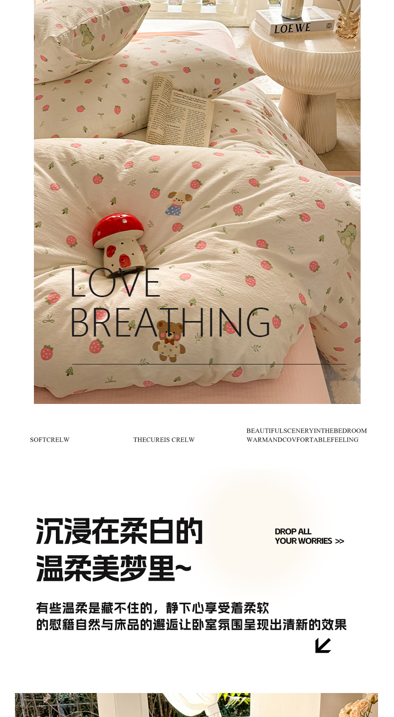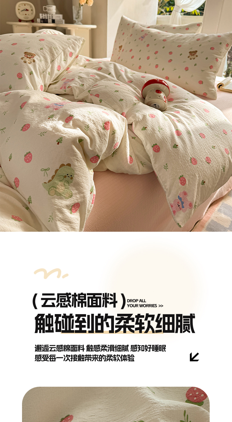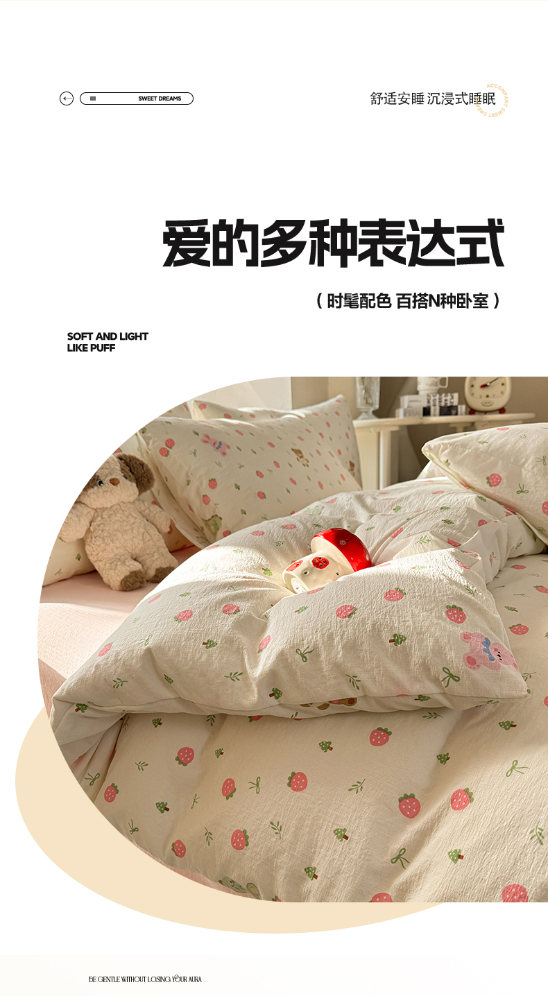 • 91家纺网 家纺一手货源 找家纺 韩巢家纺 2025热销新款云感双层纱单件被套-(提供卖家秀) 邮一颗草莓