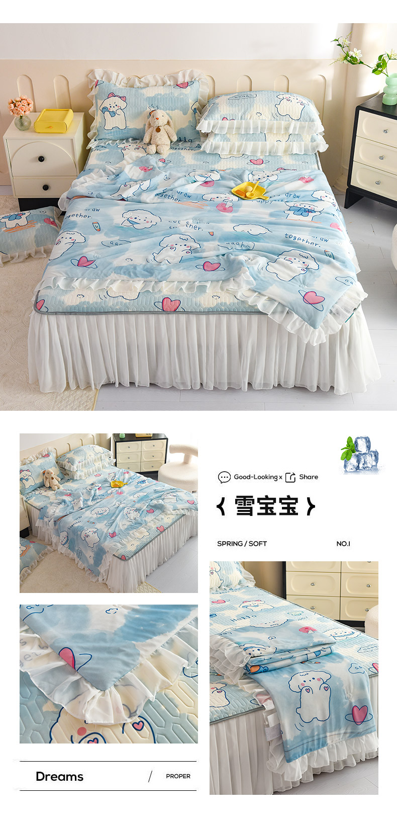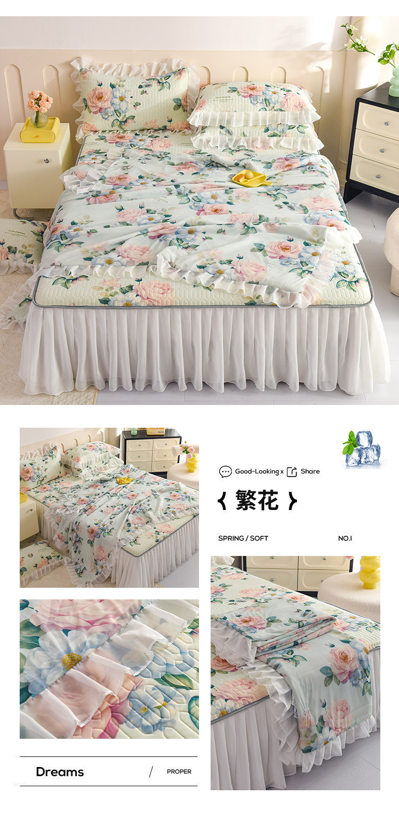 当前位置: 91家纺网 > 商品网购 > 床品套件 > 四件套 > 夏被四件套 > 悦织湾家纺 2025新款A类凉感丝床裙款乳胶凉席席子夏被夏凉被空调被四件套 吉祥如意