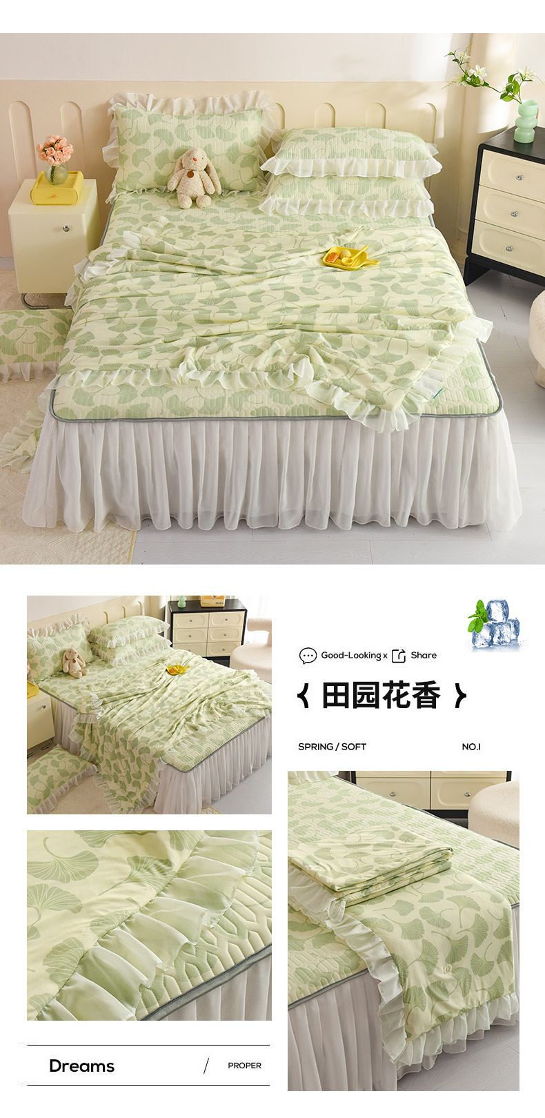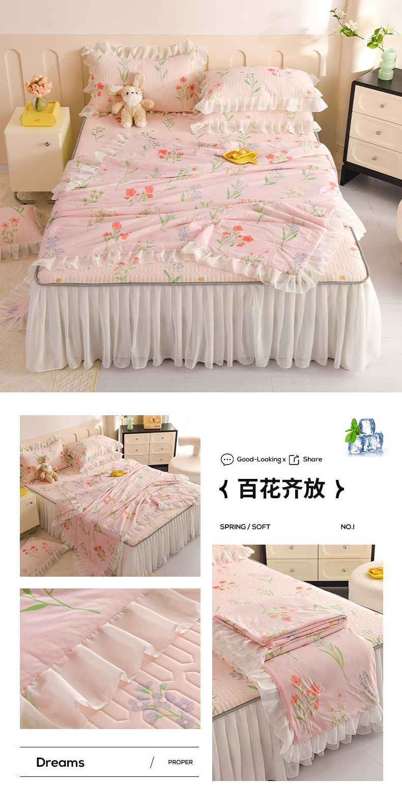 当前位置: 91家纺网 > 商品网购 > 床品套件 > 四件套 > 夏被四件套 > 悦织湾家纺 2025新款A类凉感丝床裙款乳胶凉席席子夏被夏凉被空调被四件套 蜜桃