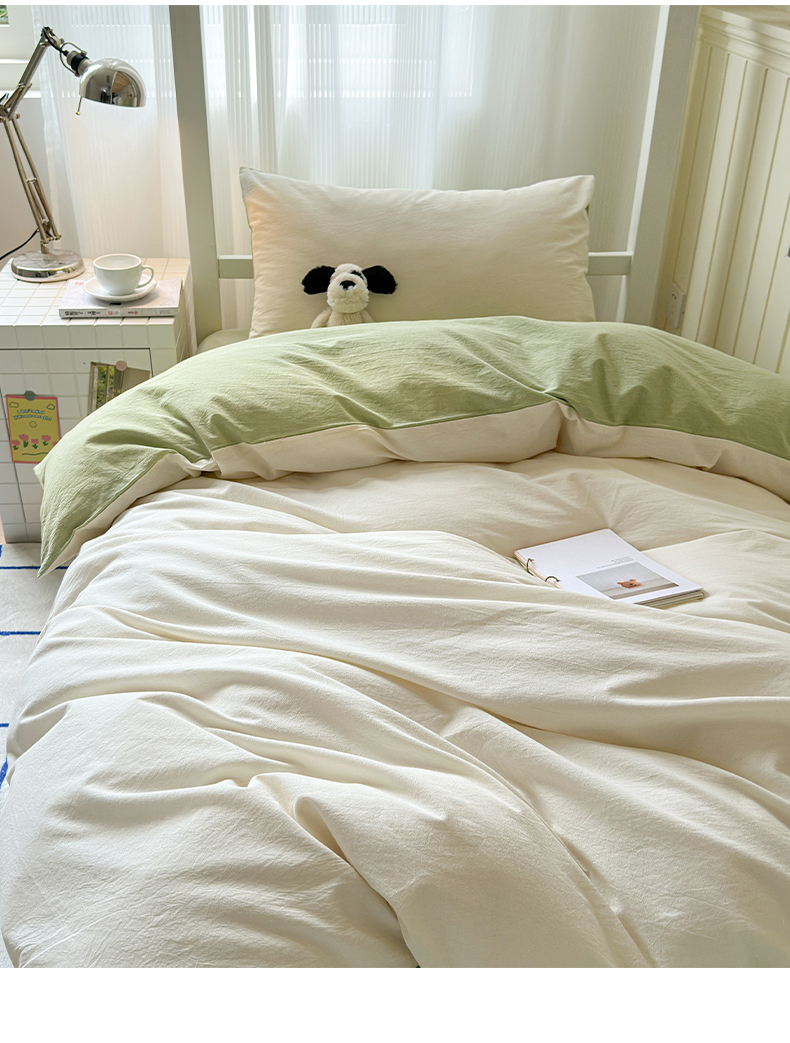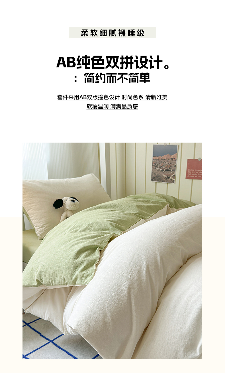 (总)全棉无印色织水洗棉提花四件套良品纯棉日式简约学生三件套,淡雅白,卡其色,抹茶绿,肉桂黄,深灰色