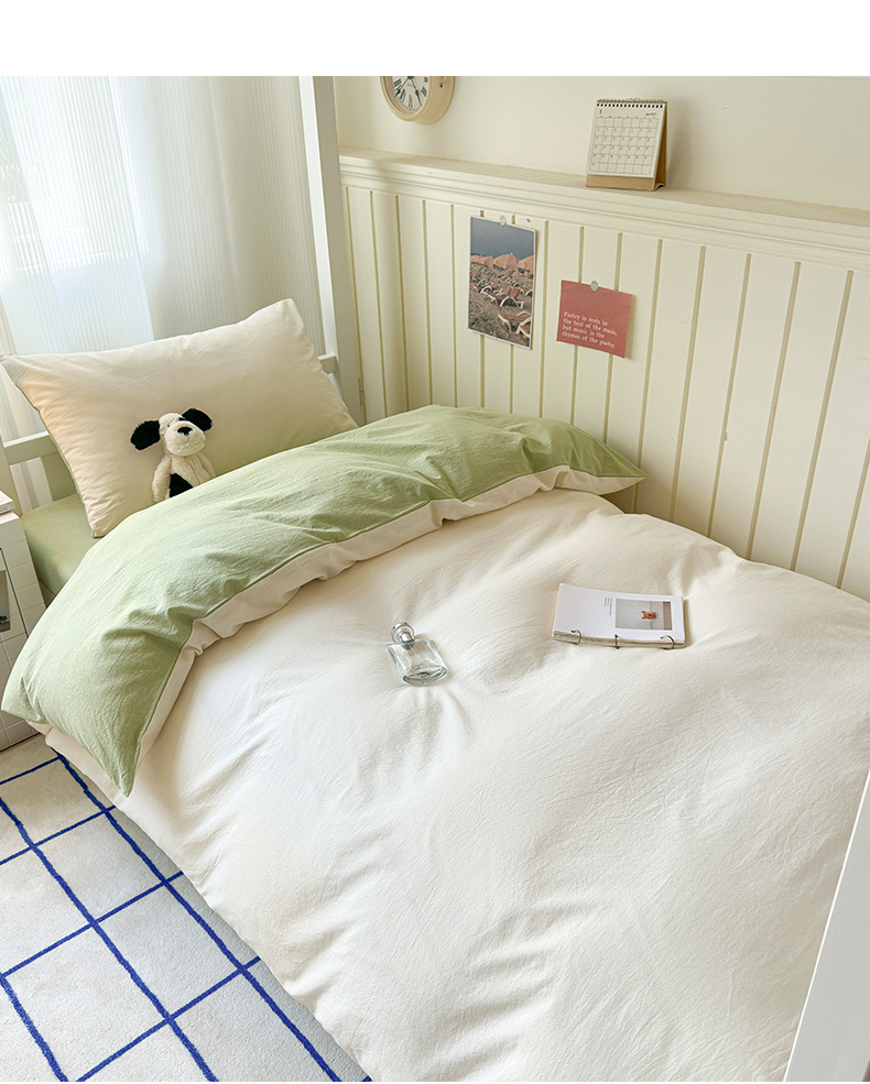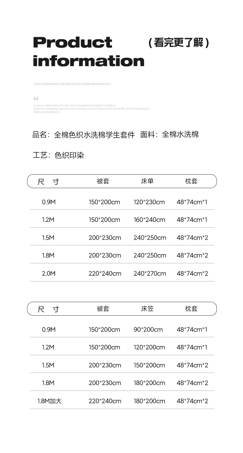 商品名称:(总)玖弘家居 2025新款全棉纯棉色织水洗棉学生宿舍三件套四件套上下铺三件套学生床套床垫套保护套