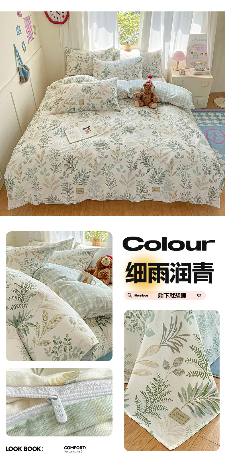 首尔家纺 2025新款学生季全棉跑量款四件套系列卡通小清新AB版学生三件套 细雨润青