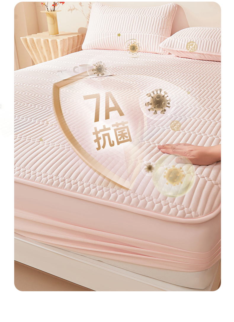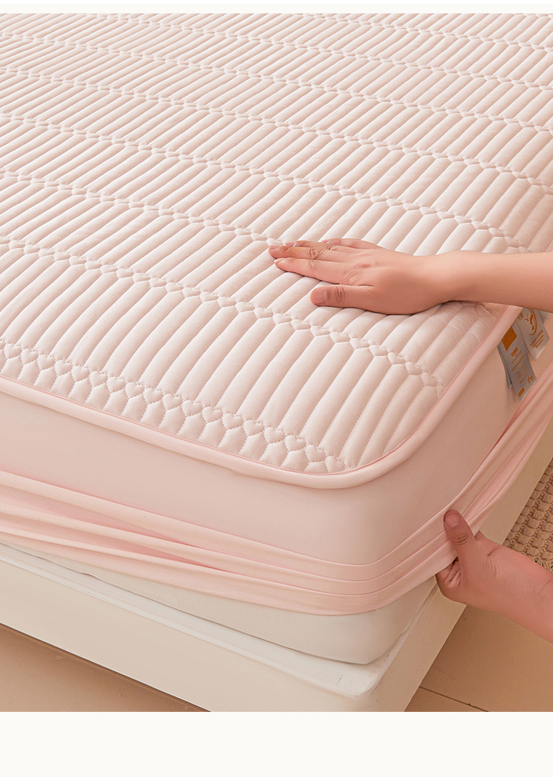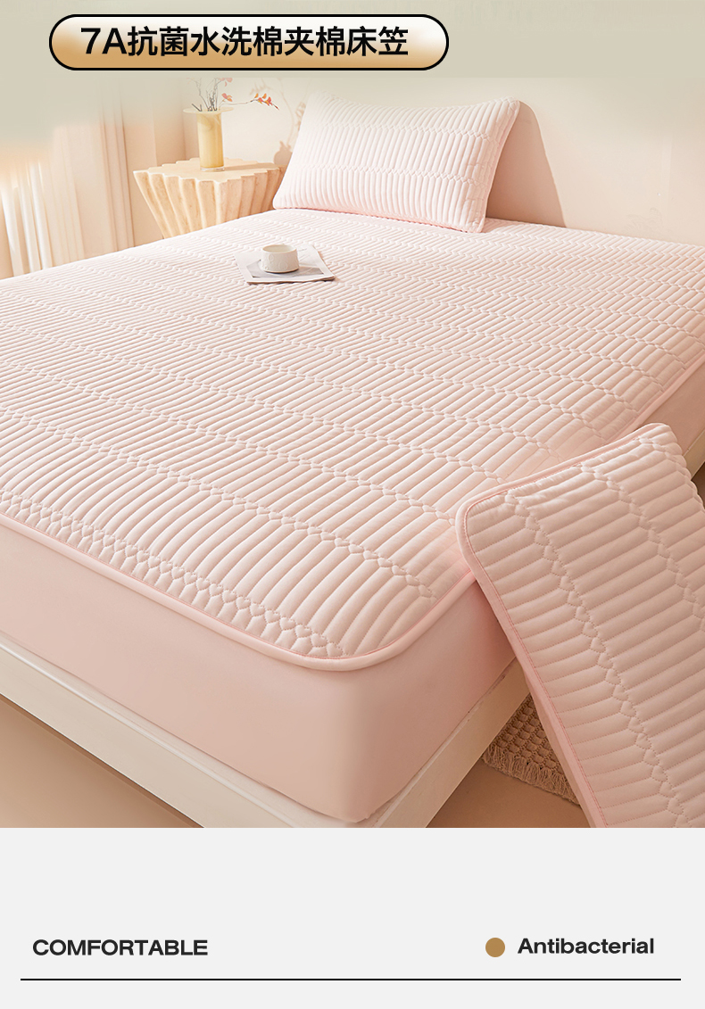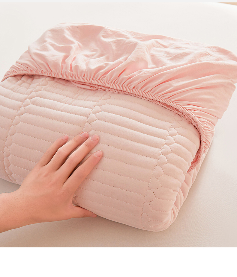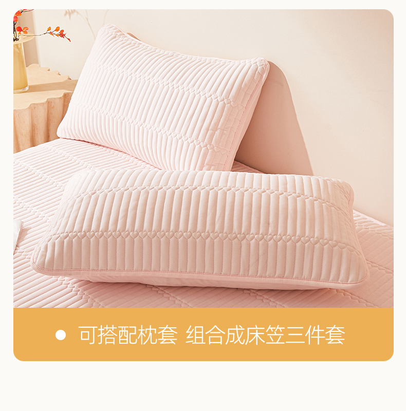 • 91家纺网 家纺一手货源 找家纺 雯豆家纺 2025新款简爱A类夹棉床笠三件套水洗棉磨毛床单保护套 简爱-密合粉