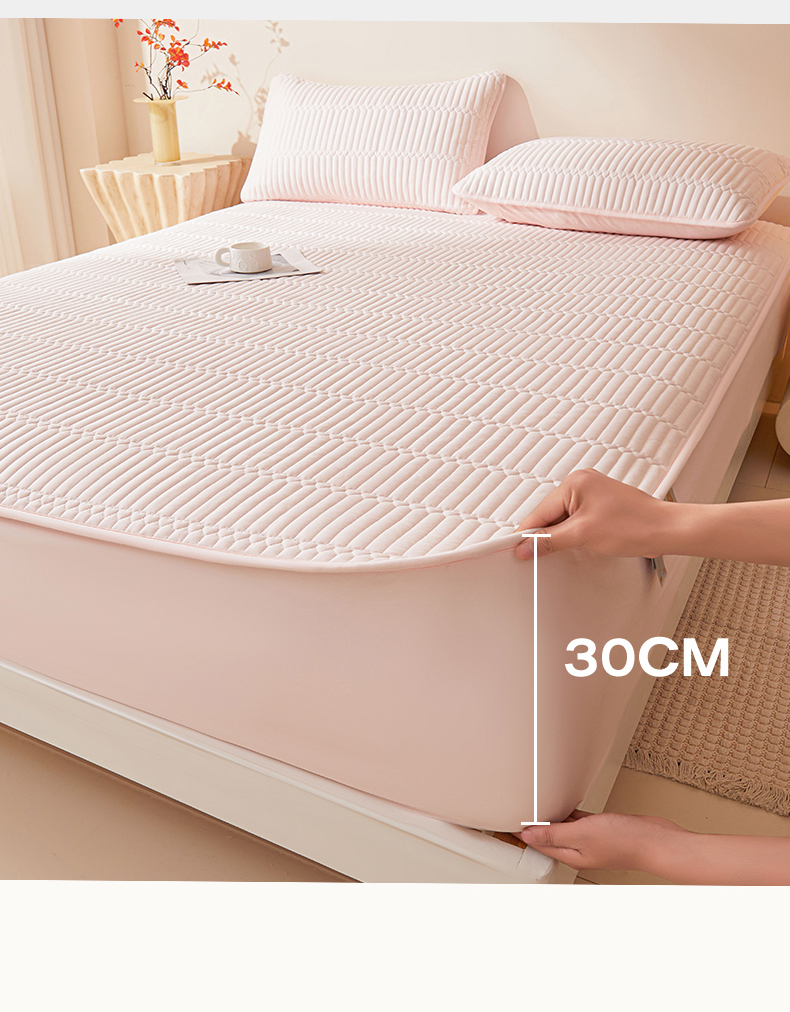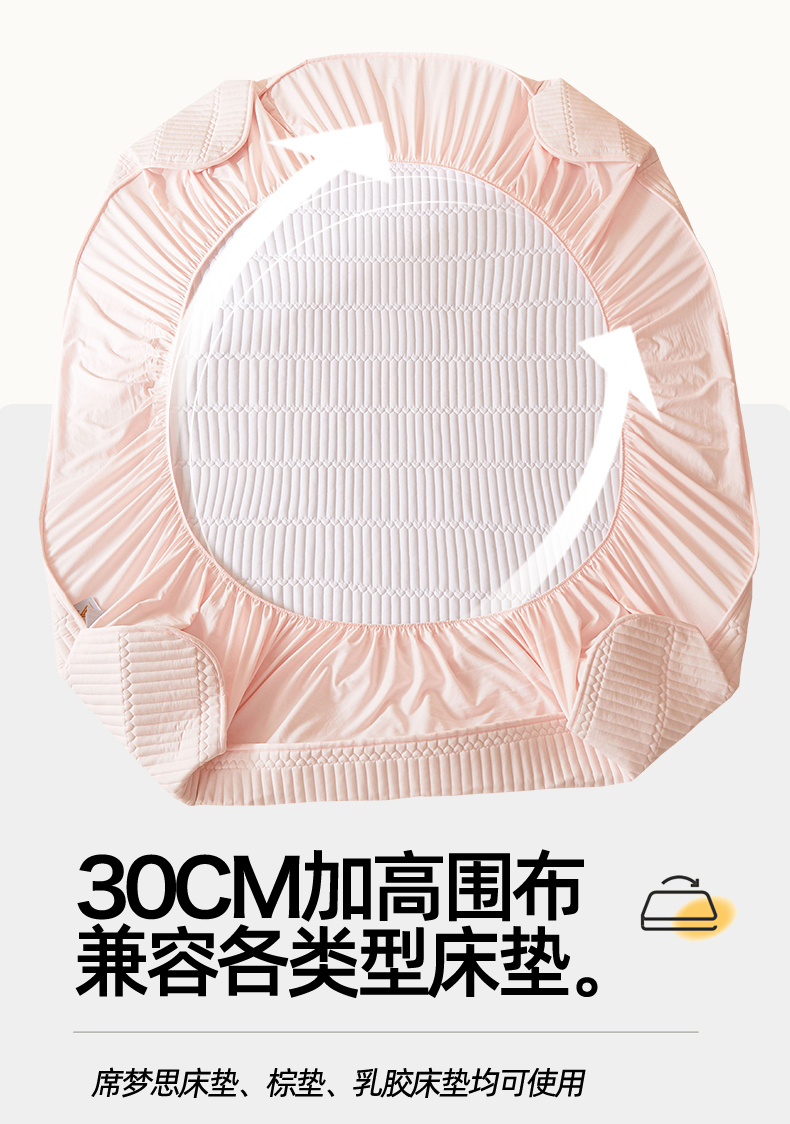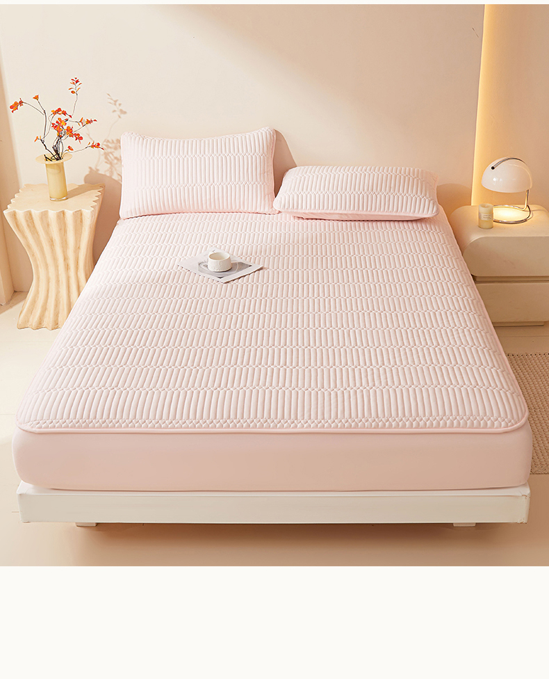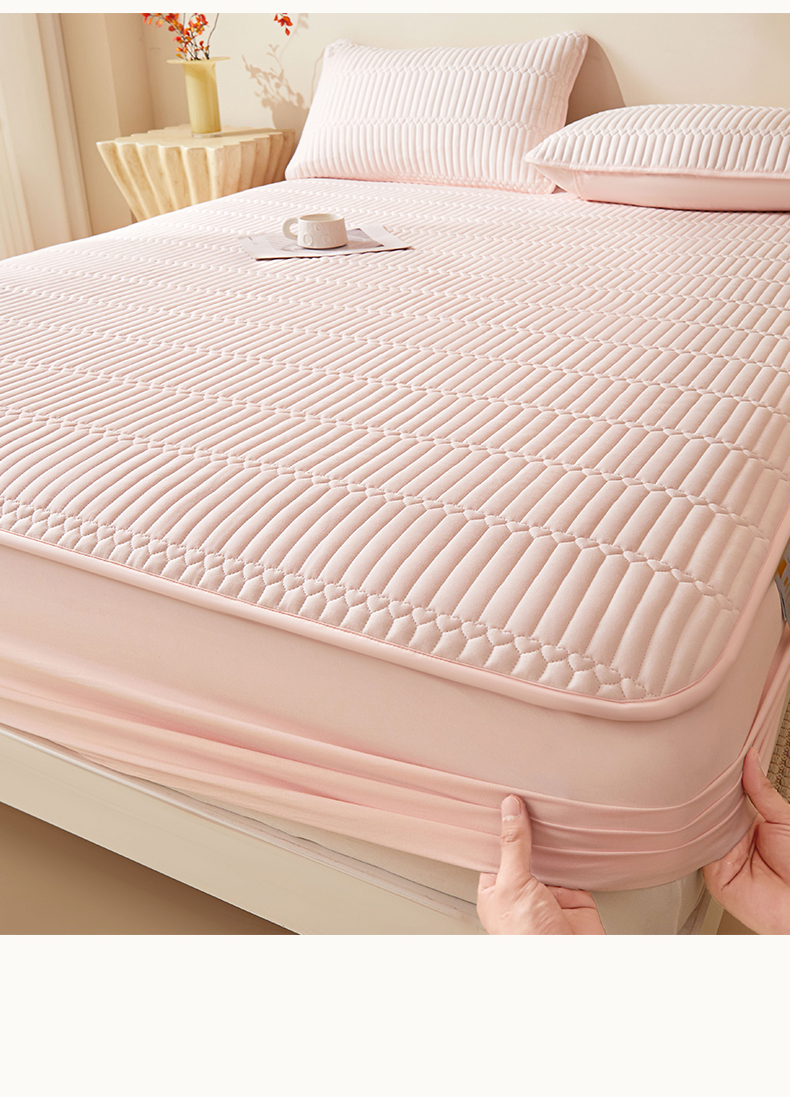 • 91家纺网 家纺一手货源 找家纺 雯豆家纺 2025新款简爱A类夹棉床笠三件套水洗棉磨毛床单保护套 简爱-密合粉