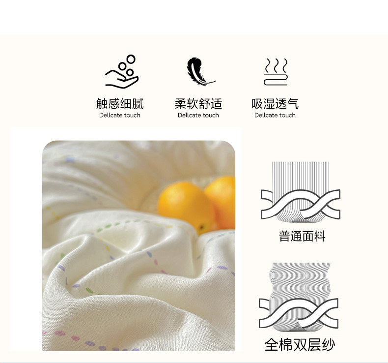 商品名称:静家居-简约原创家纺 2025新款A类全棉双层纱sweet毛巾绣四件套 星线