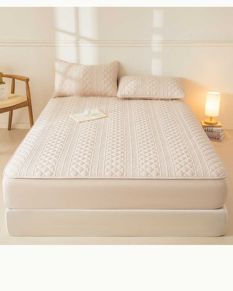 雯豆家纺 2025新款简爱A类夹棉床笠三件套水洗棉磨毛床单保护套 梵可-奶咖
