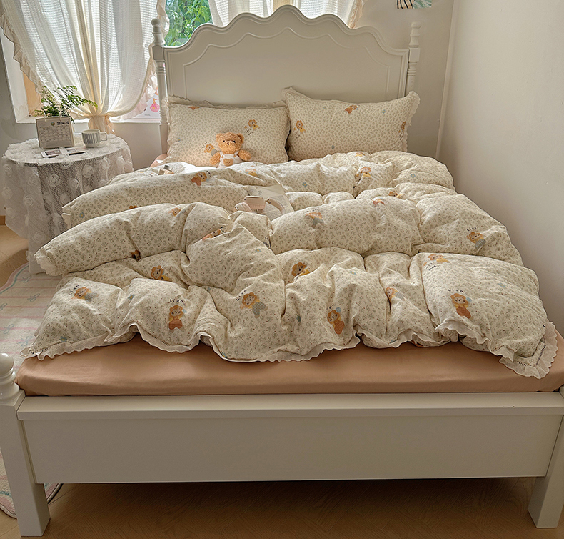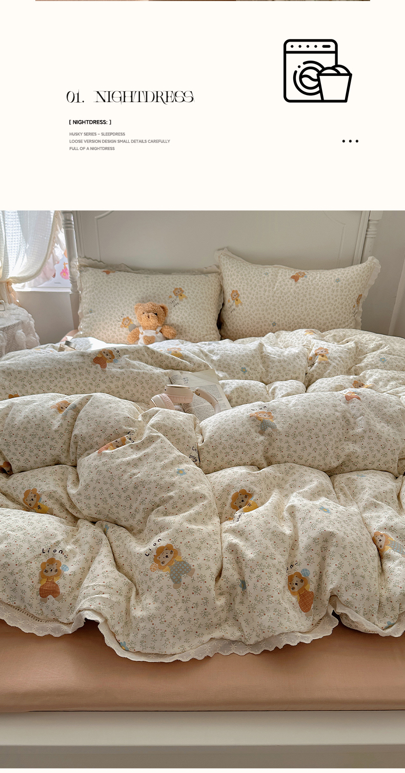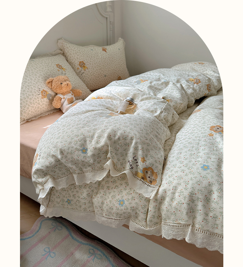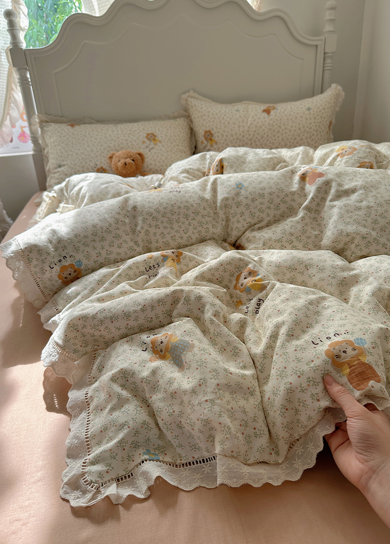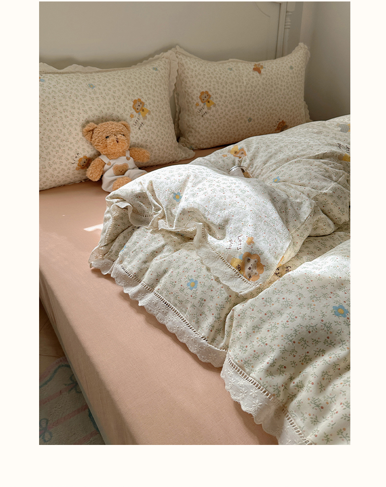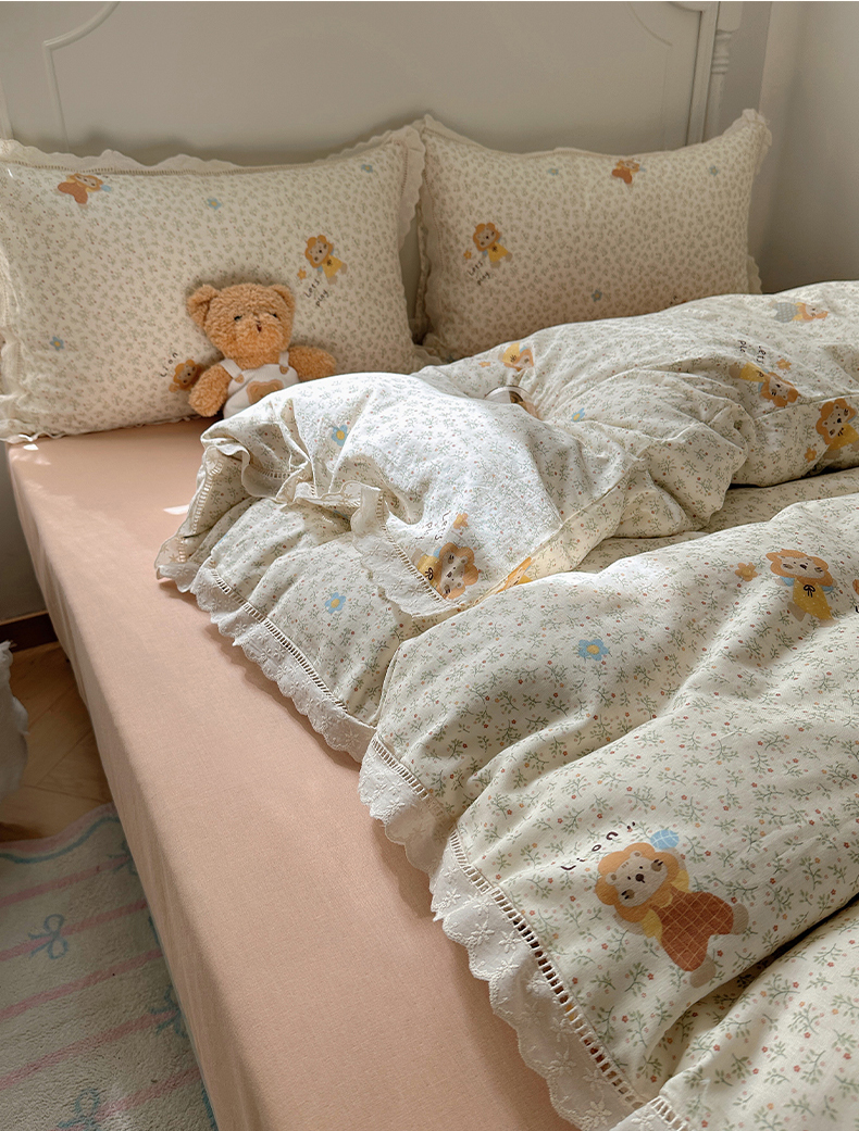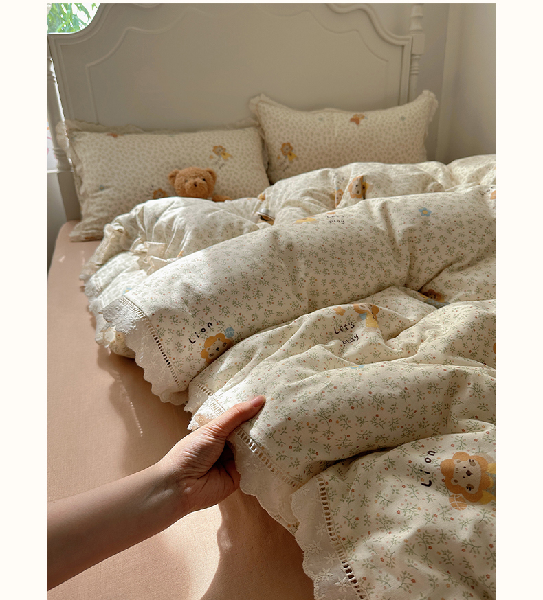 当前位置: 91家纺网 > 商品网购 > 床品套件 > 四件套 > 全棉普通四件套 > 瑞莱 2025新款全棉纯棉A类有氧双层纱镂空花边四件套 镂空-萌萌狮