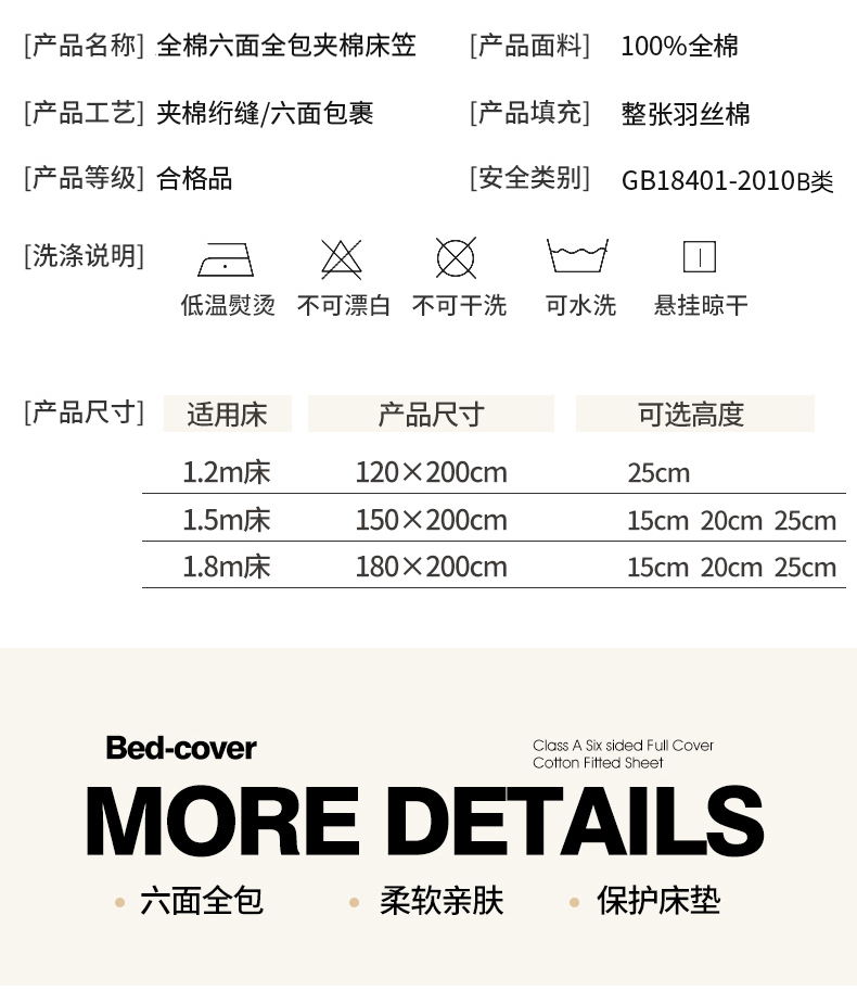 衿成家纺 2025新品清雅全棉六面全包床笠 全棉六包清雅驼