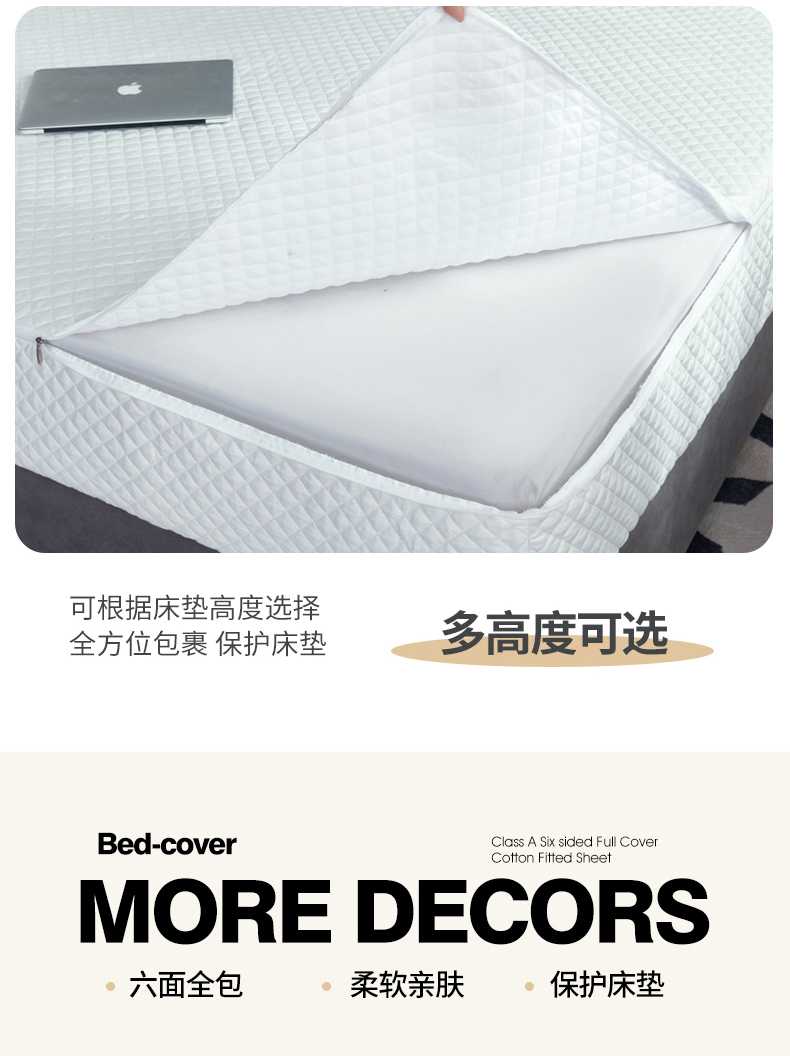 (总)衿成家纺 2025新款磨毛夹棉全包防水床笠,六面防水白,六面防水豆沙,六面防水卡其,六面防水天蓝,六面防水烟灰