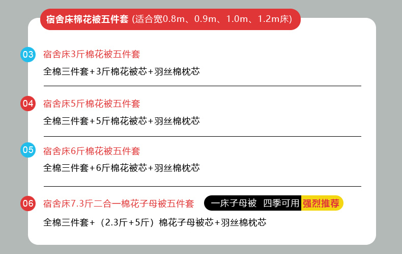 【床单款】0.9m床7.3斤棉花子母被五件套 | ¥202.00 |