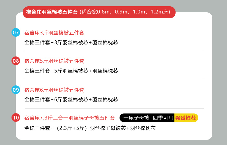 【床单款】0.9m床7.3斤羽丝棉子母被五件套 | ¥173.00 |