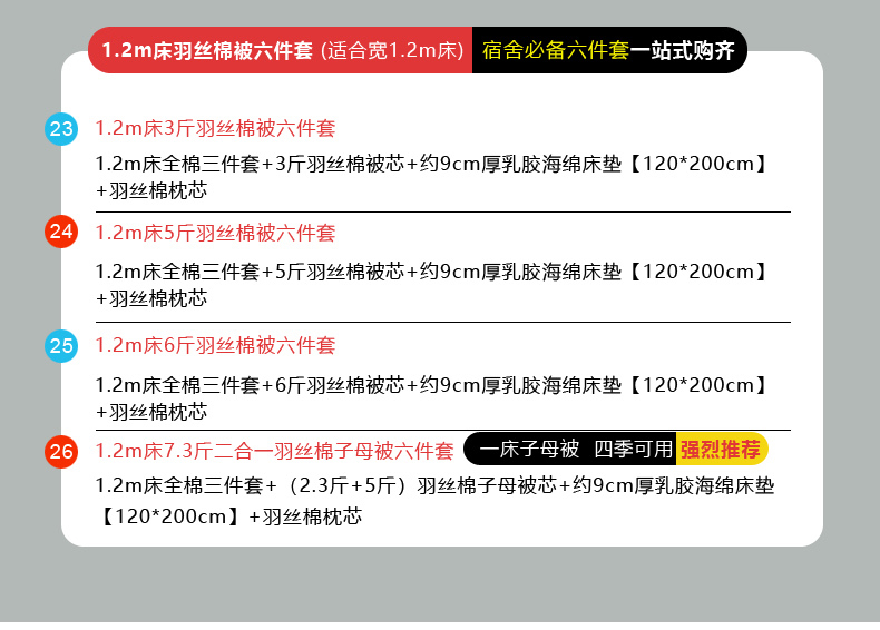 【海绵床垫床单款】1.2m床7.3斤羽丝棉子母被六件套 | ¥283.00 |
