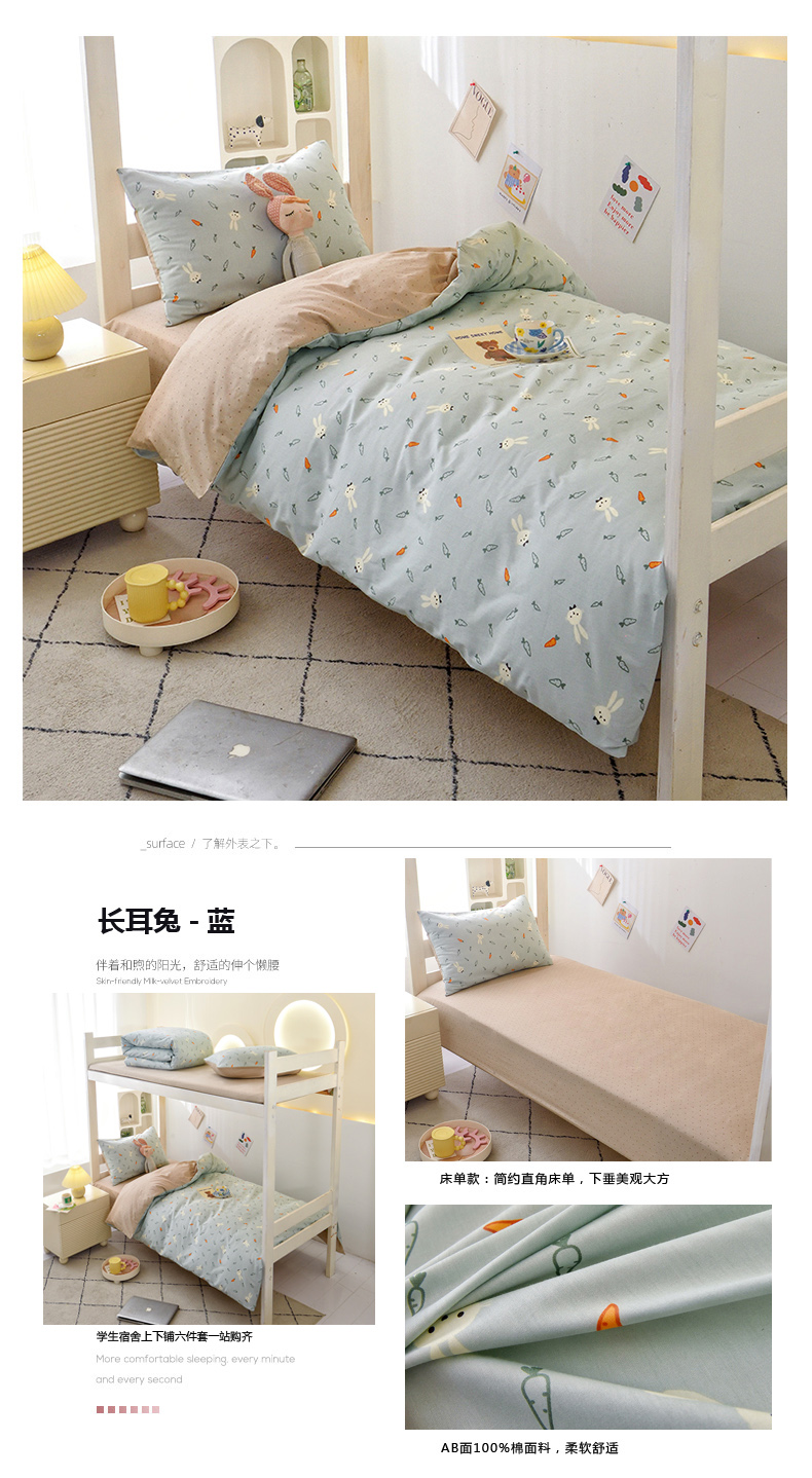 当前位置: 91家纺网 > 商品网购 > 床品套件 > 三件套 > 水妙家纺 2025新款A类全棉学生宿舍二合一子母被海绵床垫六件套床单五件套纯棉三件套可定制 长耳兔-蓝