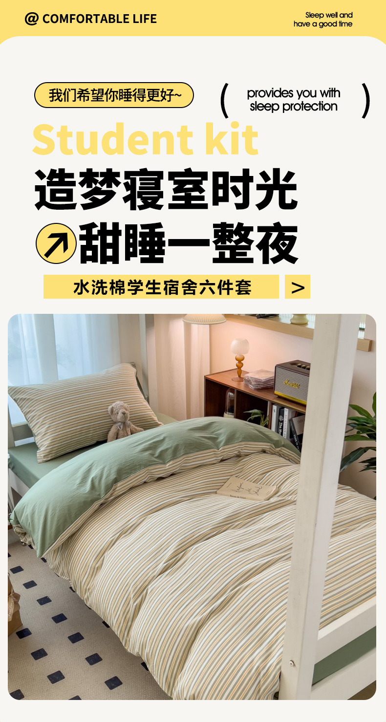 商品名称:宝士康家纺 2025春夏新款简约水洗棉学生三件套宿舍三件套上下铺三件套套件学生六件套套件(床单款) 格韵绿