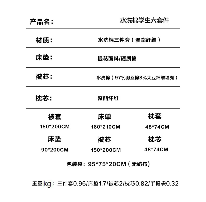 【床单款】0.9六件套+被套1.5+0.9床垫+1.5/6斤被
