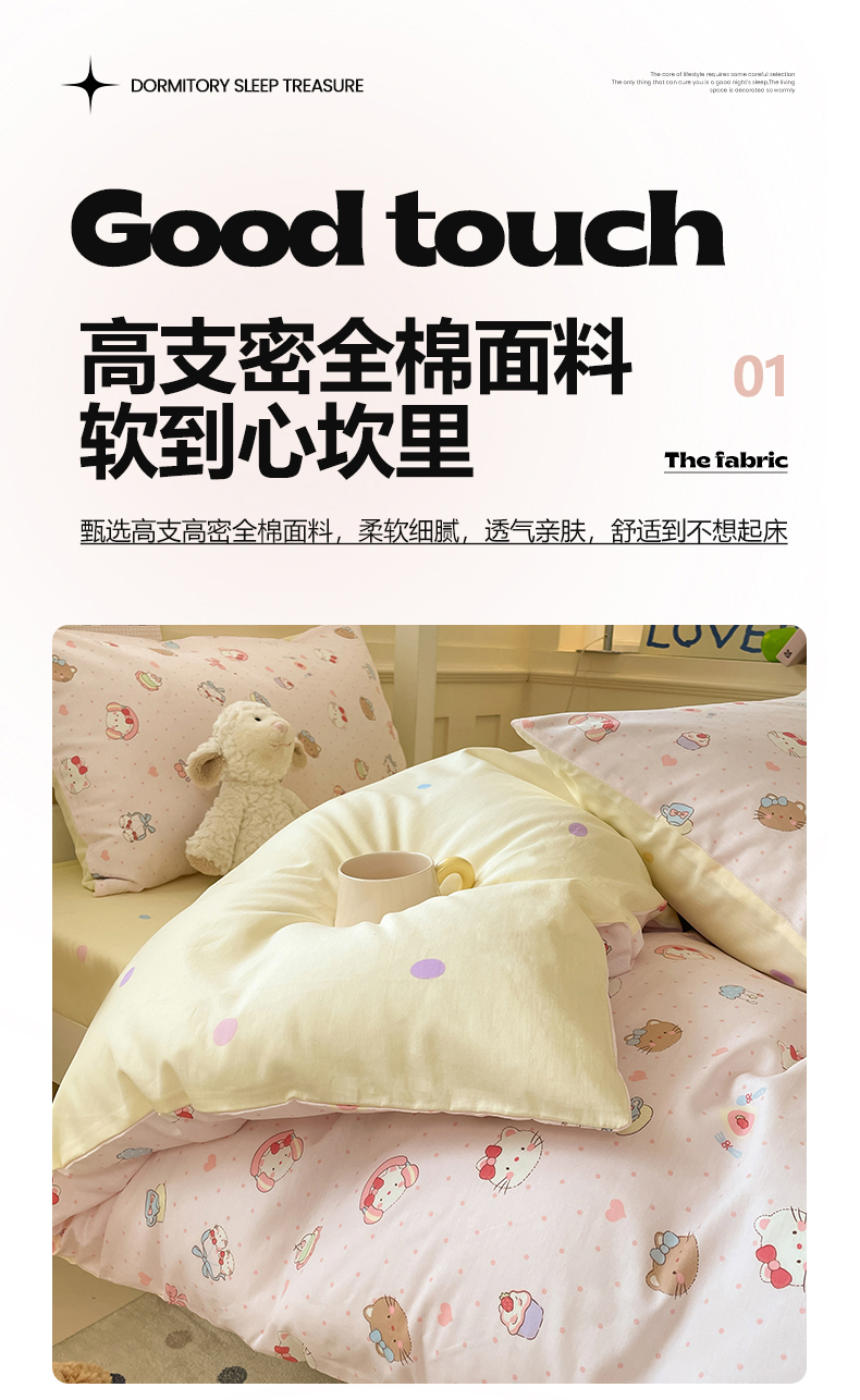 商品名称:(总)吉象家纺 2025新款12868高支密全棉印花学生季三件套