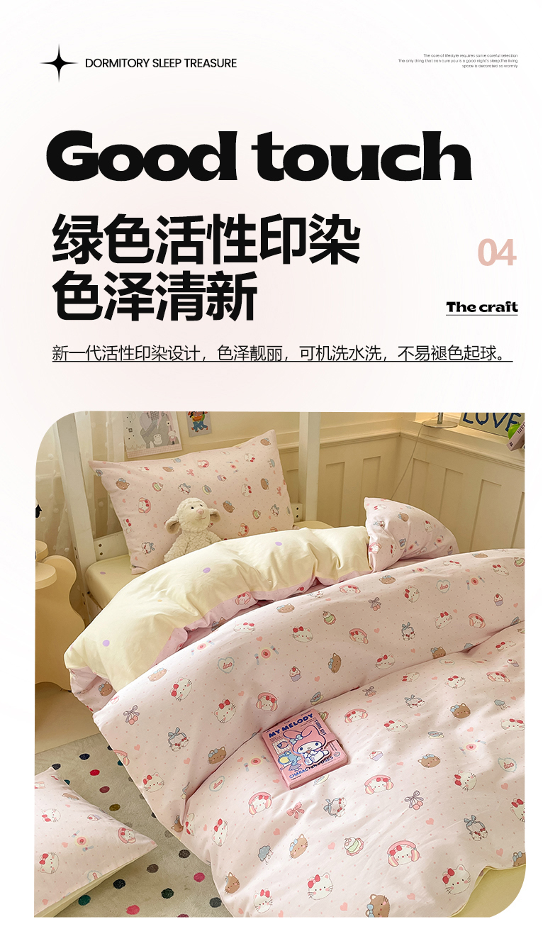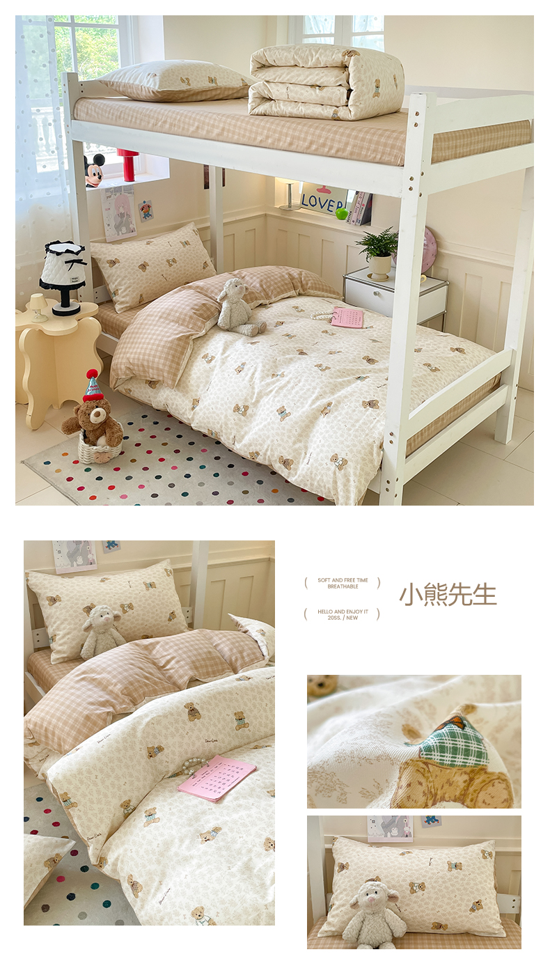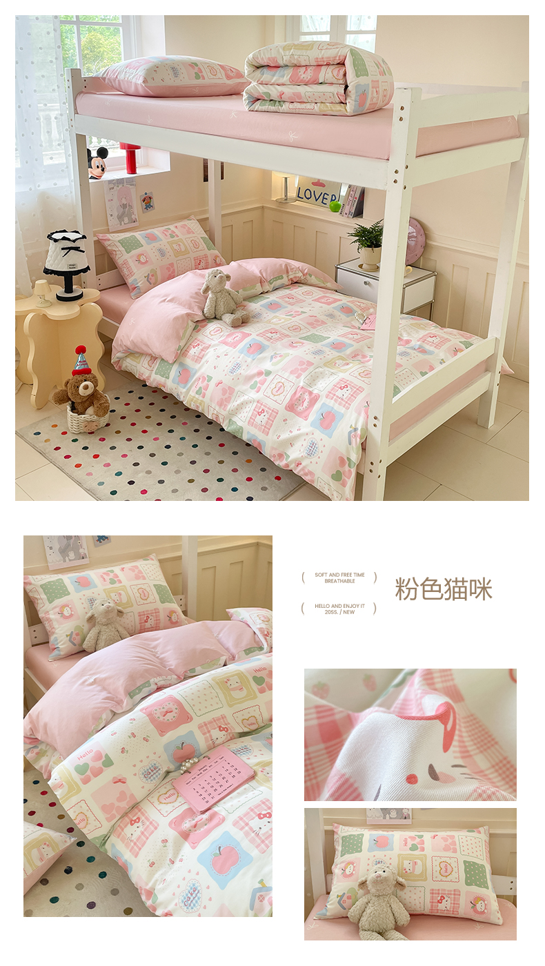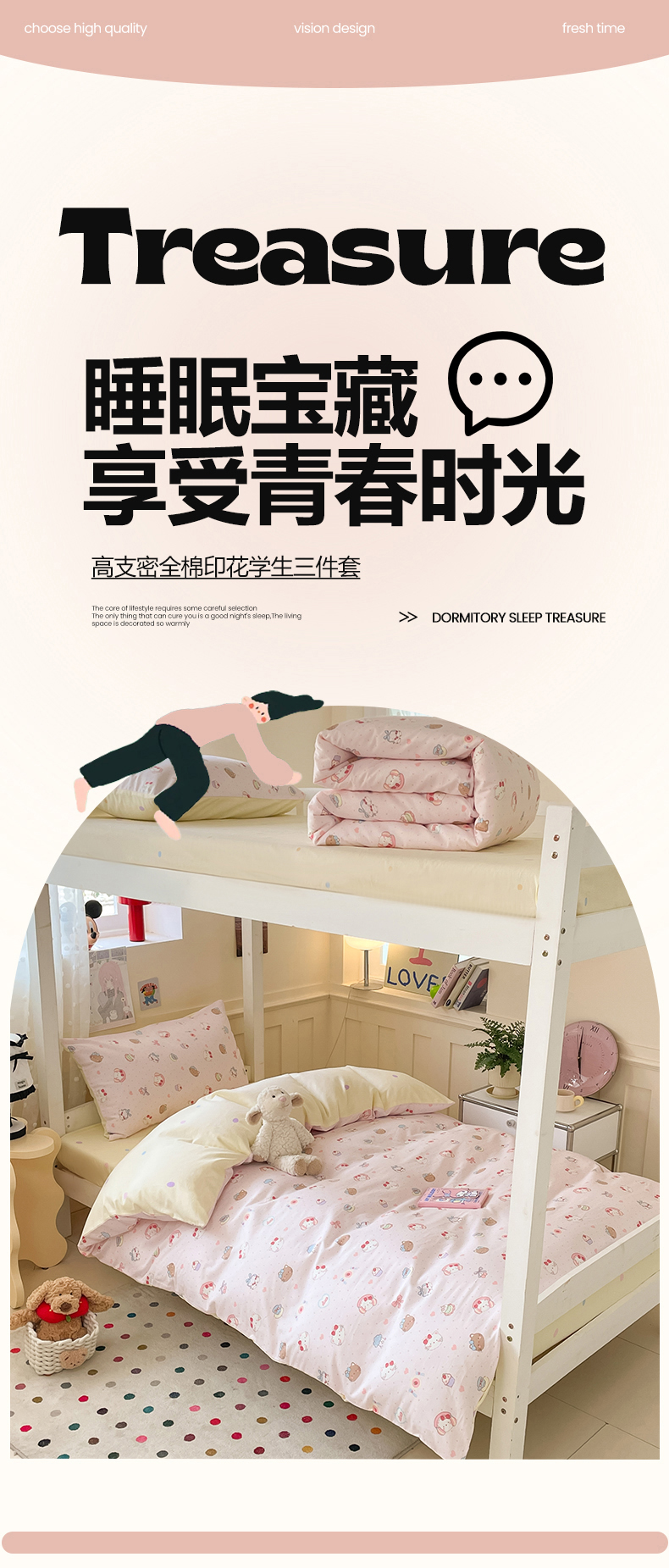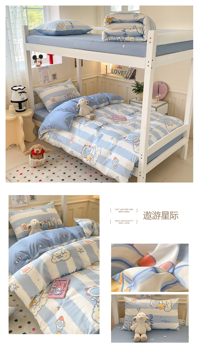 (总)吉象 2025新款全棉印花学生三件套学生宿舍三件套,霸王龙,马里奥,蜜桃兔,太空旅行,悉尼豆沙,悉尼绿