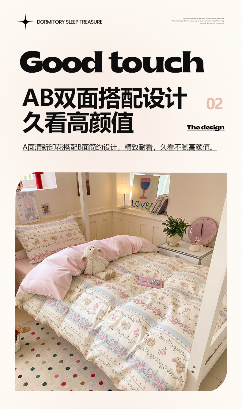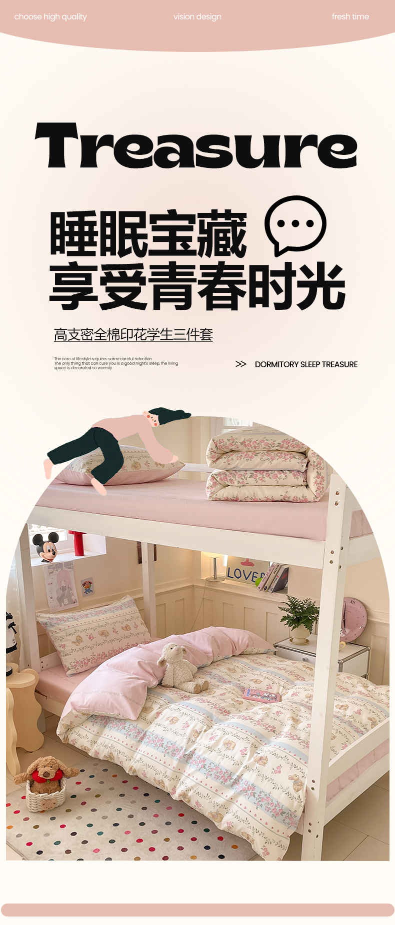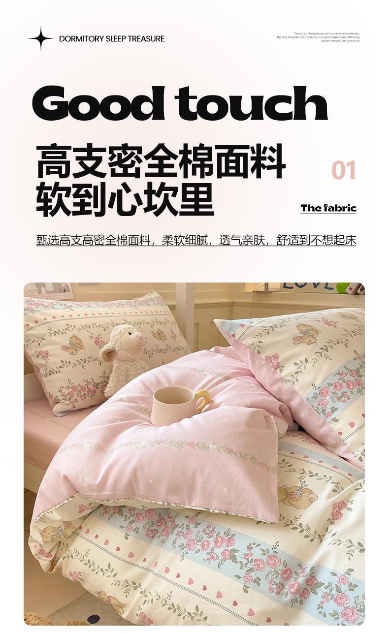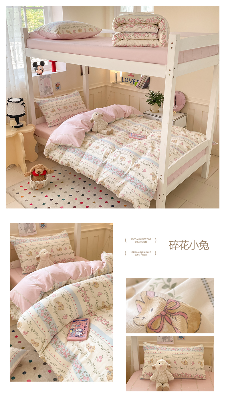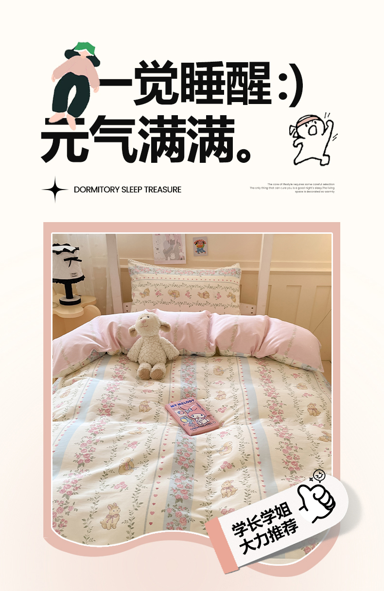 当前位置: 91家纺网 > 商品网购 > 床品套件 > 三件套 > 吉象家纺 2025新款12868高支密全棉印花学生季三件套 碎花小兔