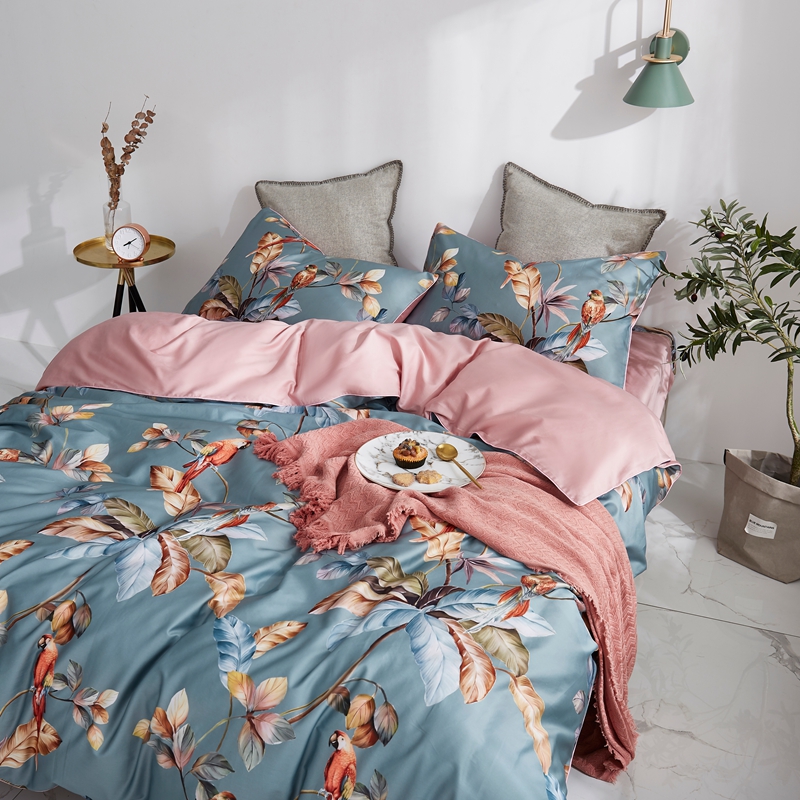优然居家纺 2025新款60支数码印花麻绳款四件套 鸟语花香