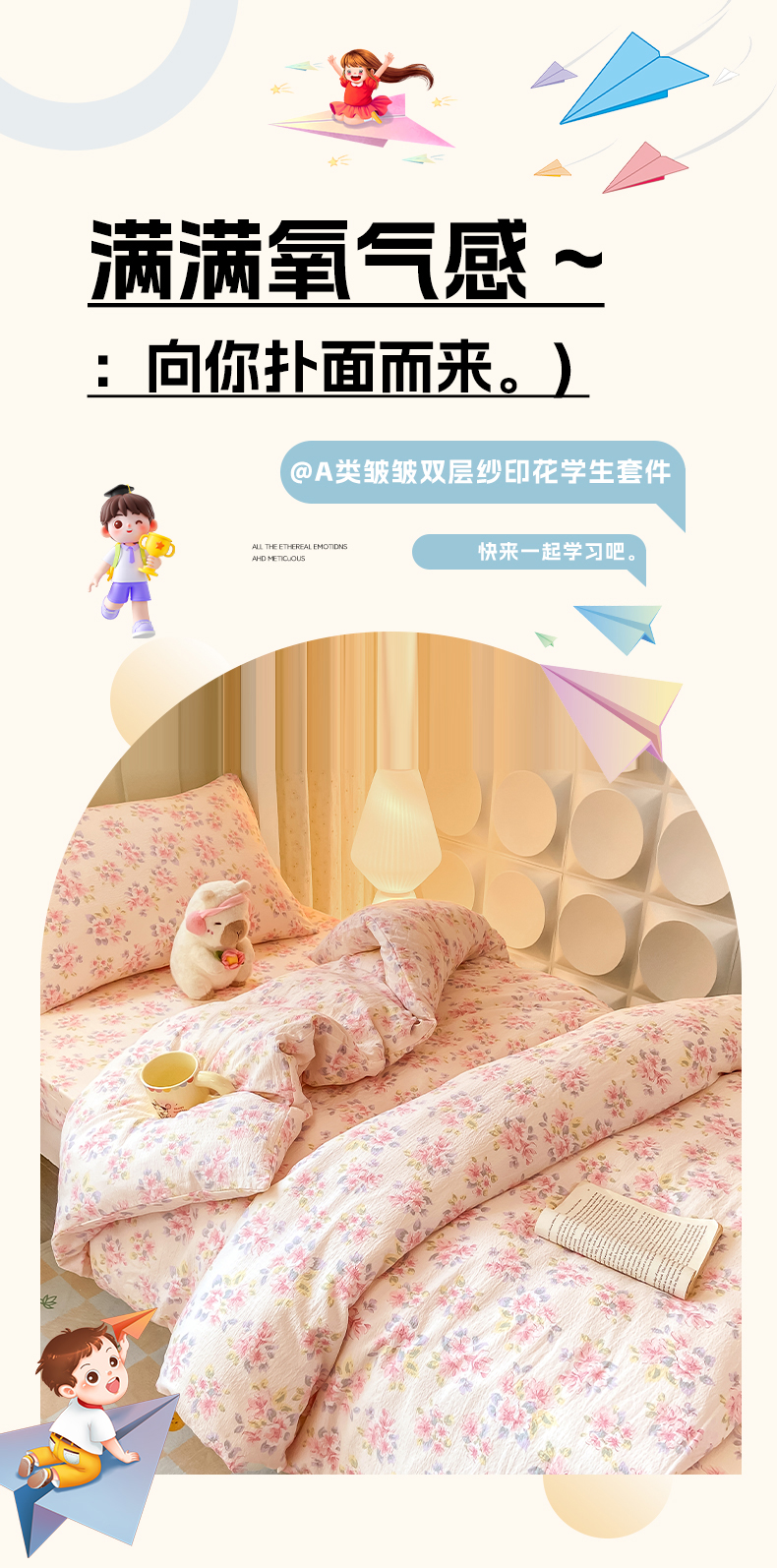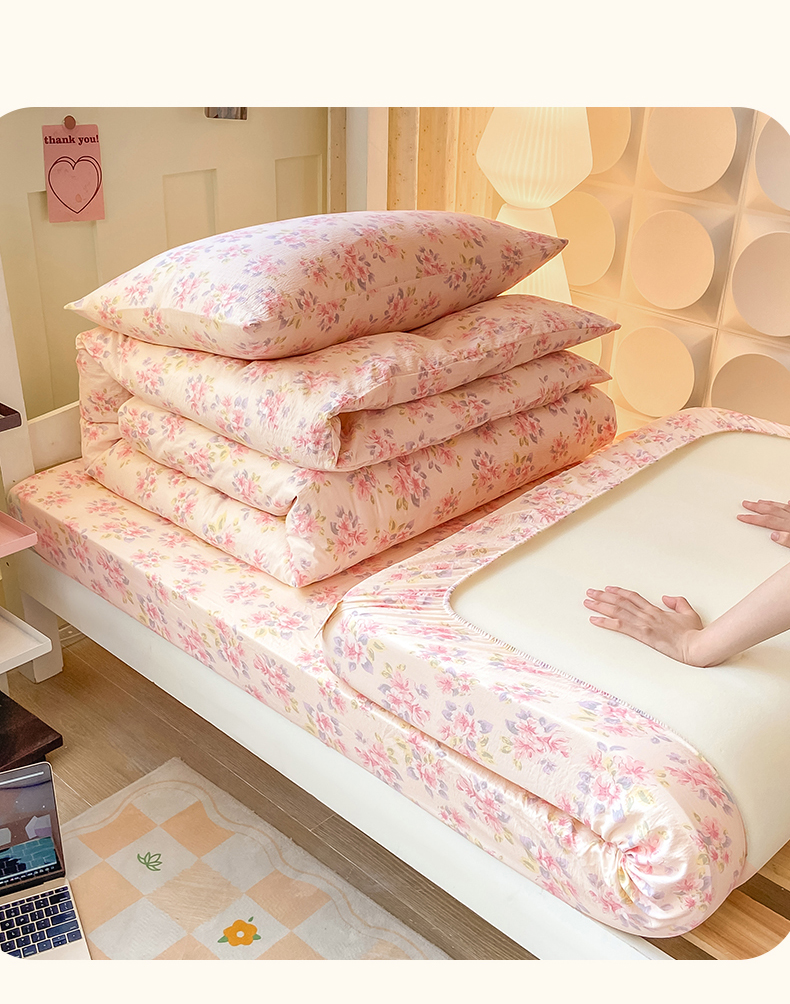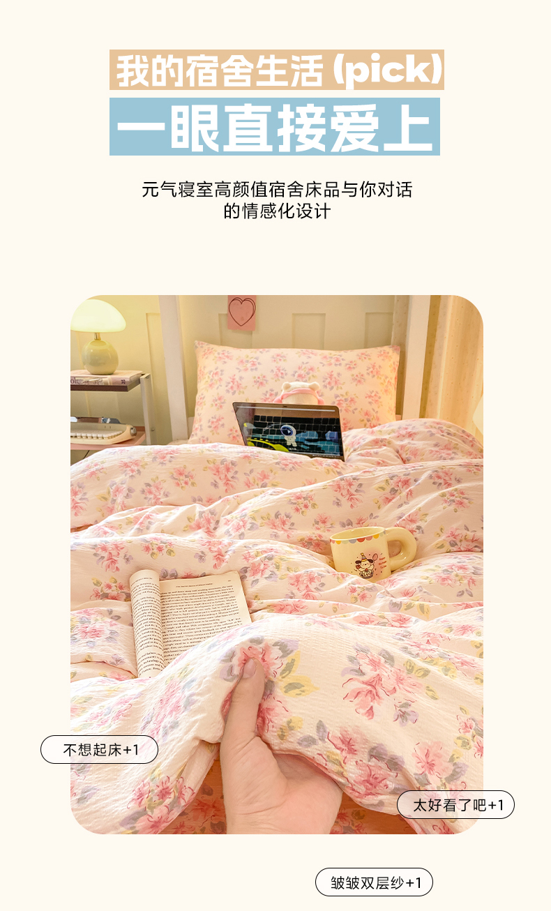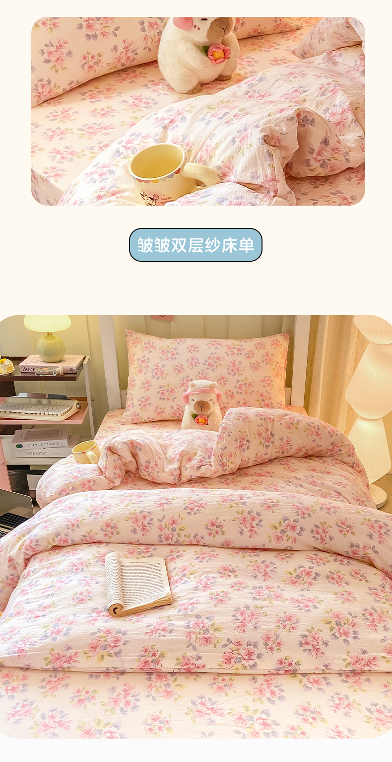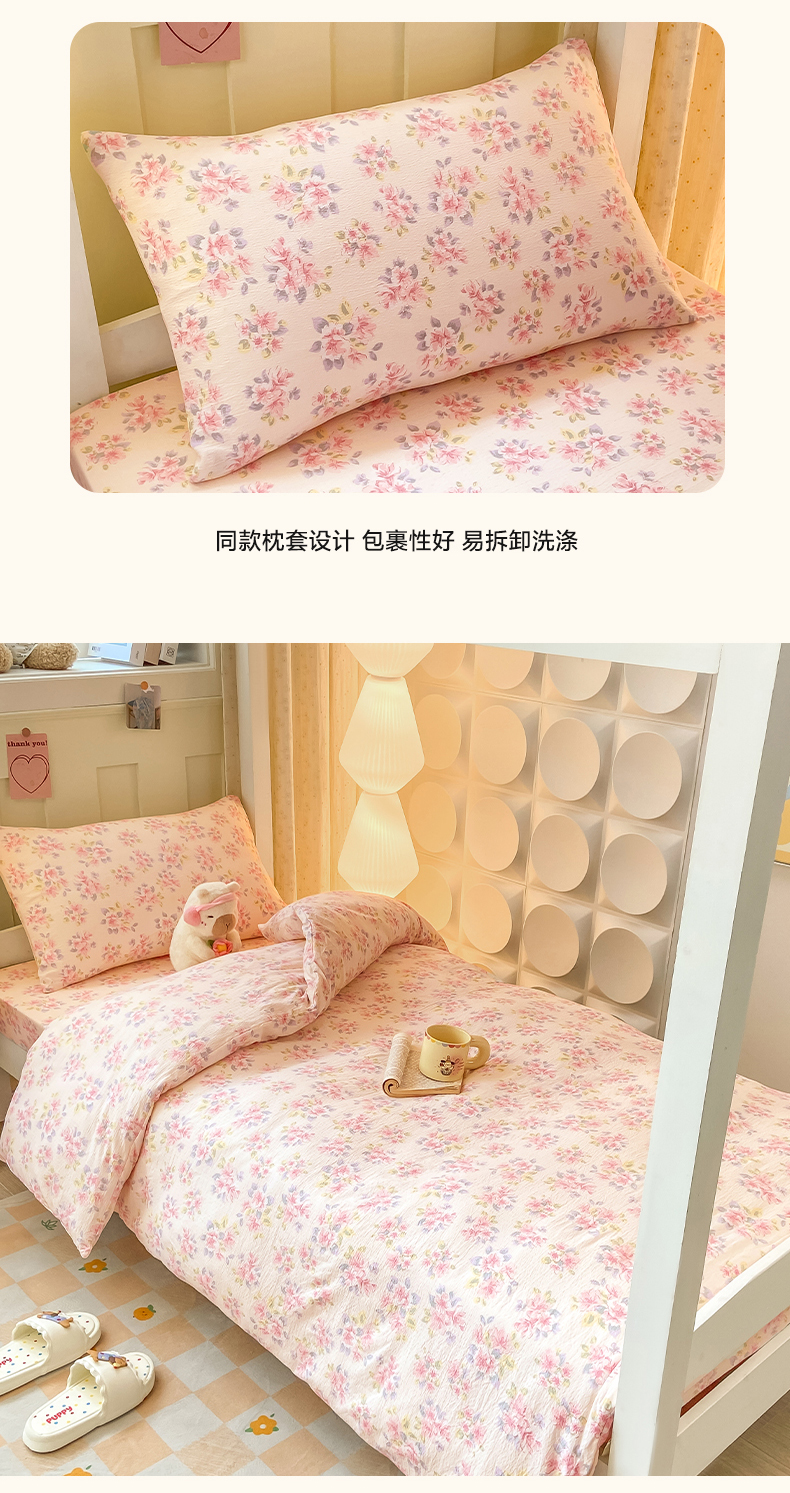 当前位置: 91家纺网 > 商品网购 > 床品套件 > 三件套 > 眠势力 2025新款双层纱学生三件套宿舍上下铺套件ins奶油风云感四件套 粉调花海