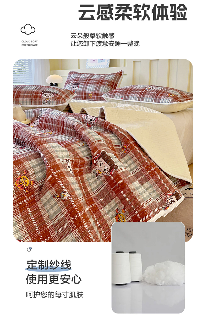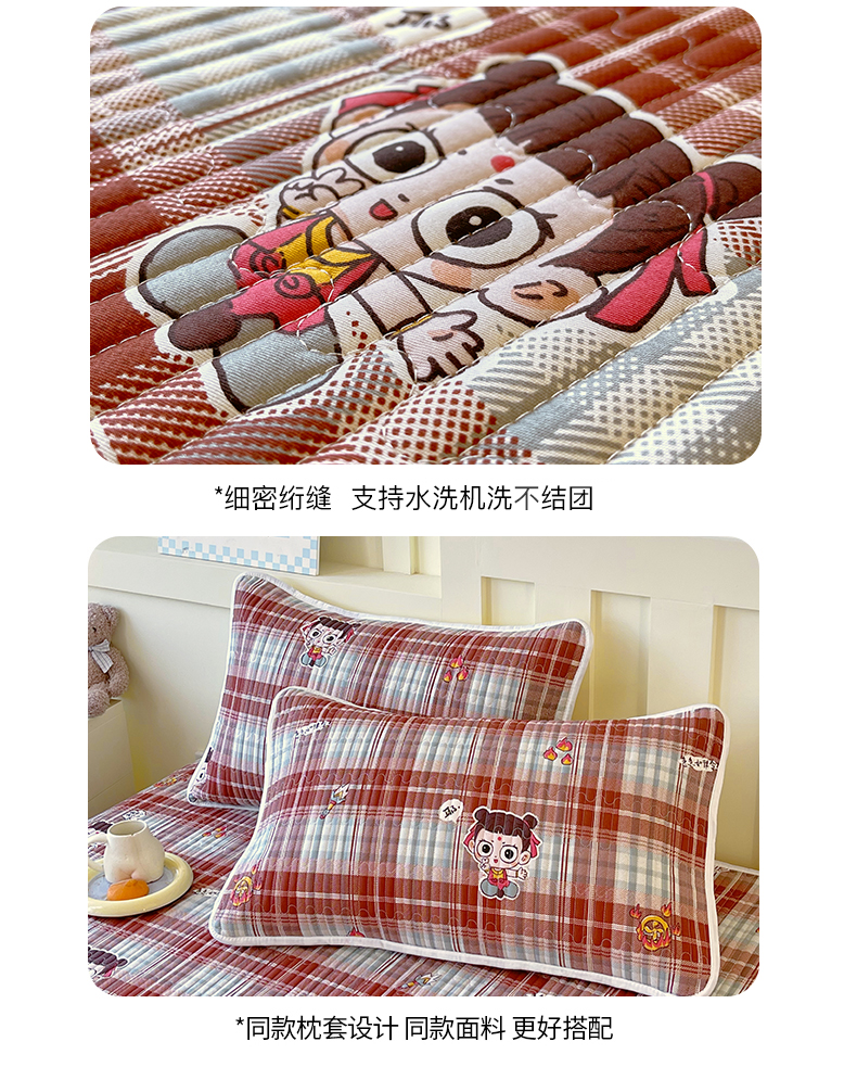 当前位置: 91家纺网 > 商品网购 > 床上用品 > 床盖 > 金鑫汇家纺2025新款A类全棉绗缝夹棉印花床盖 传奇哪吒·棕