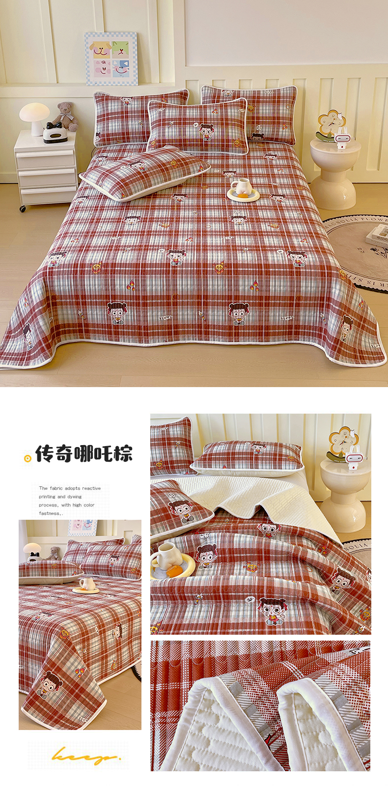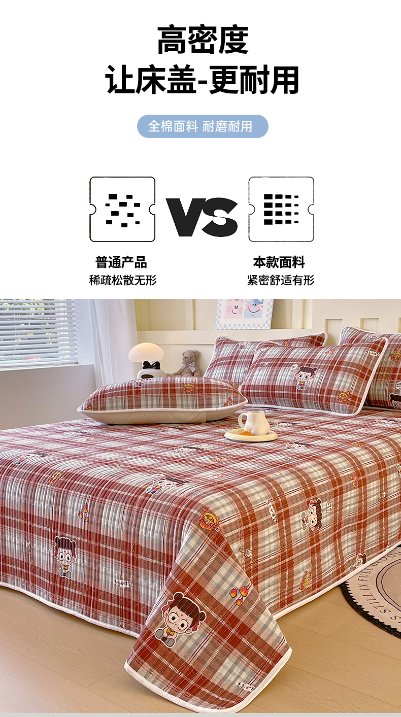 金鑫汇家纺2025新款A类全棉绗缝夹棉印花床盖 传奇哪吒·棕