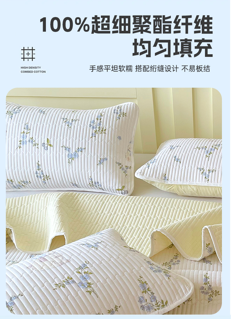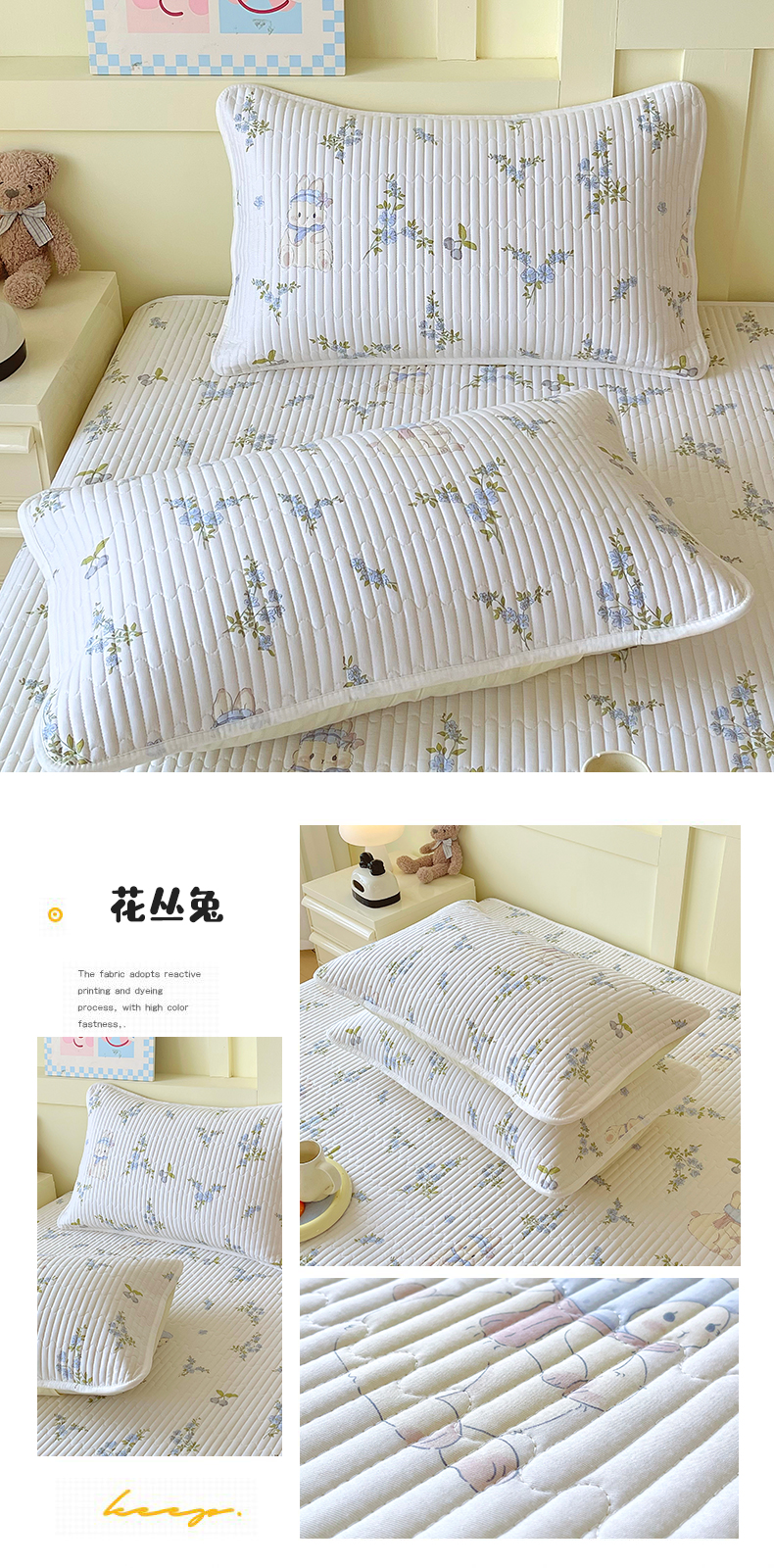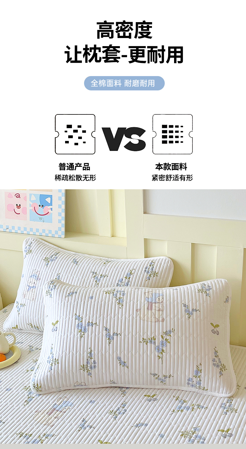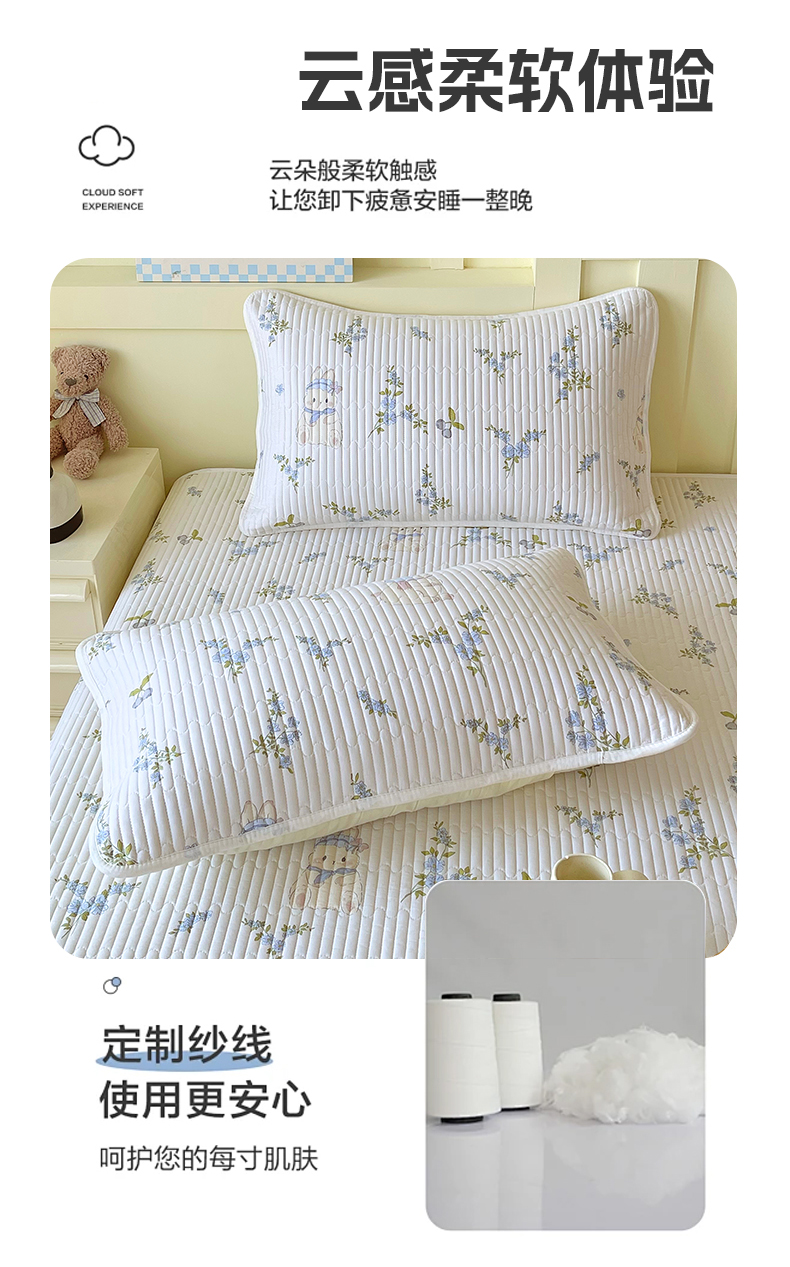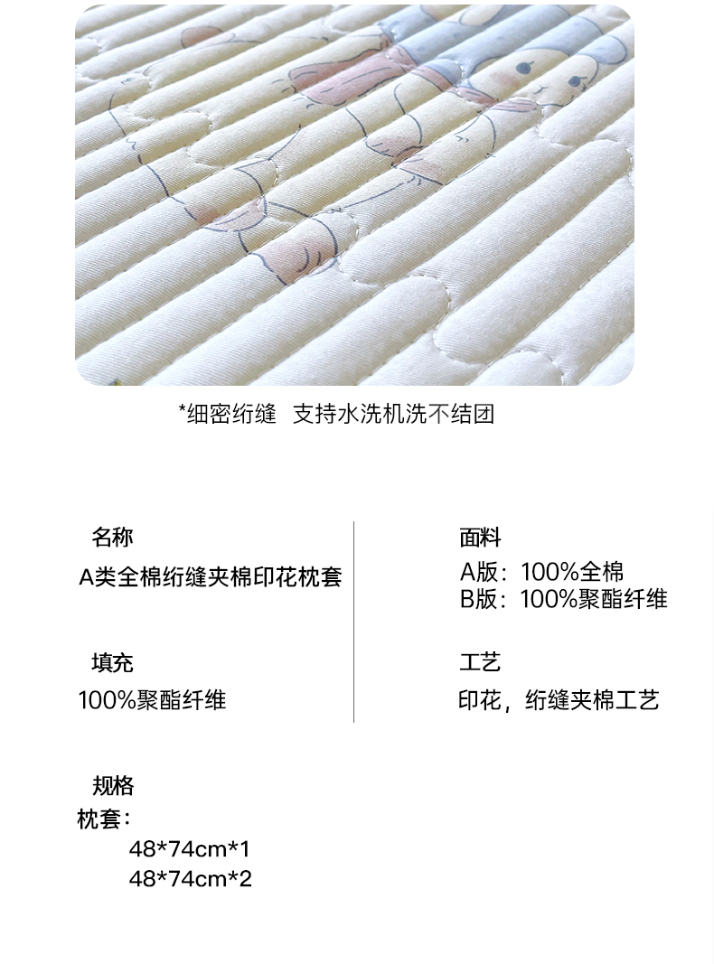 商品名称:金鑫汇家纺 2025新款A类全绗缝夹棉印花枕套 花丛兔