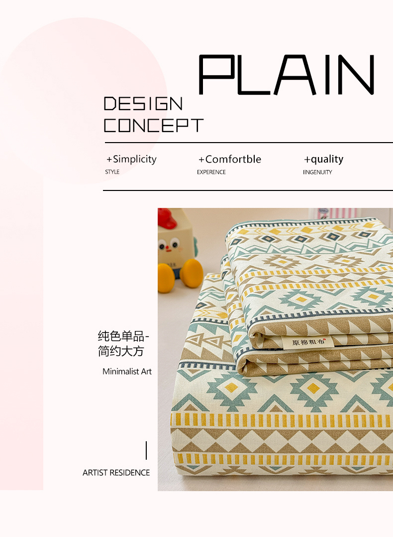 • 91家纺网 家纺一手货源 找家纺 爱彼家纺  2025新款锦柔老粗布席子凉席床单热卖花型 波西米亚