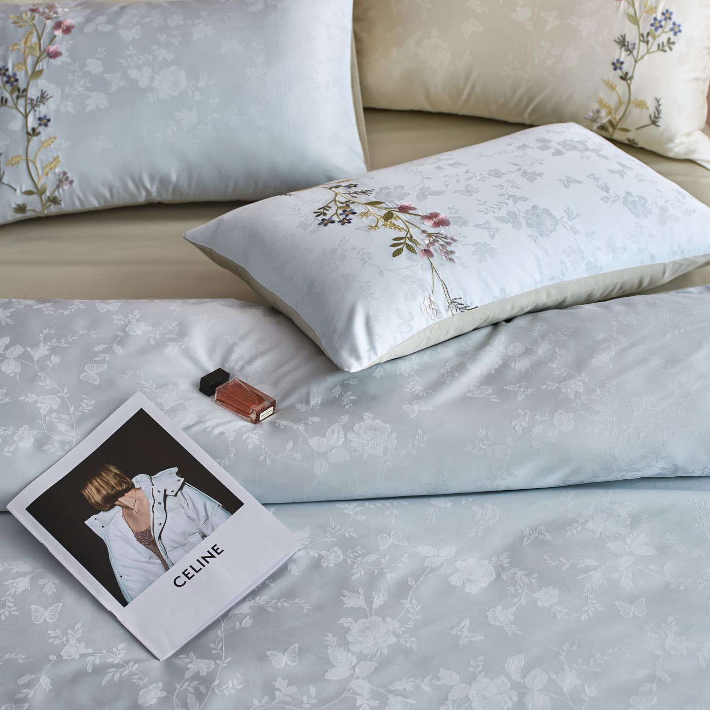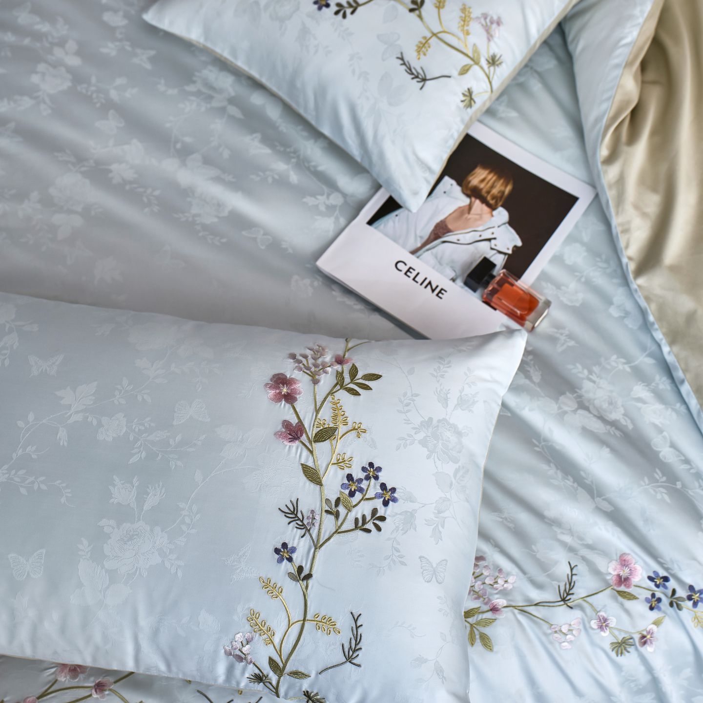 (总)初拾 2025新款100s双股澳棉刺绣四件套-赫拉公主(棉),棉 赫拉公主-海边蓝,棉 赫拉公主-奶油粉