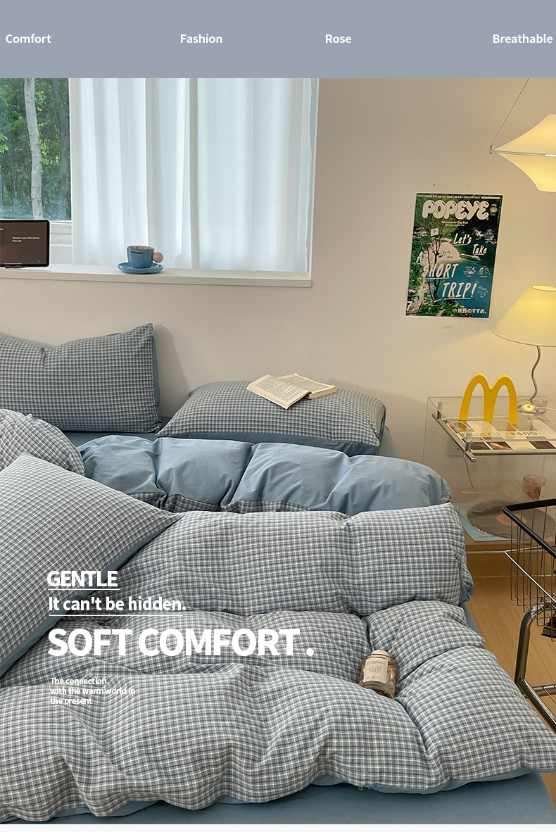 当前位置: 91家纺网 > 商品网购 > 床品套件 > 四件套 > 水洗棉四件套 > ab家纺 2025新款40支色织a类全棉水洗棉四件套 若兮-兰
