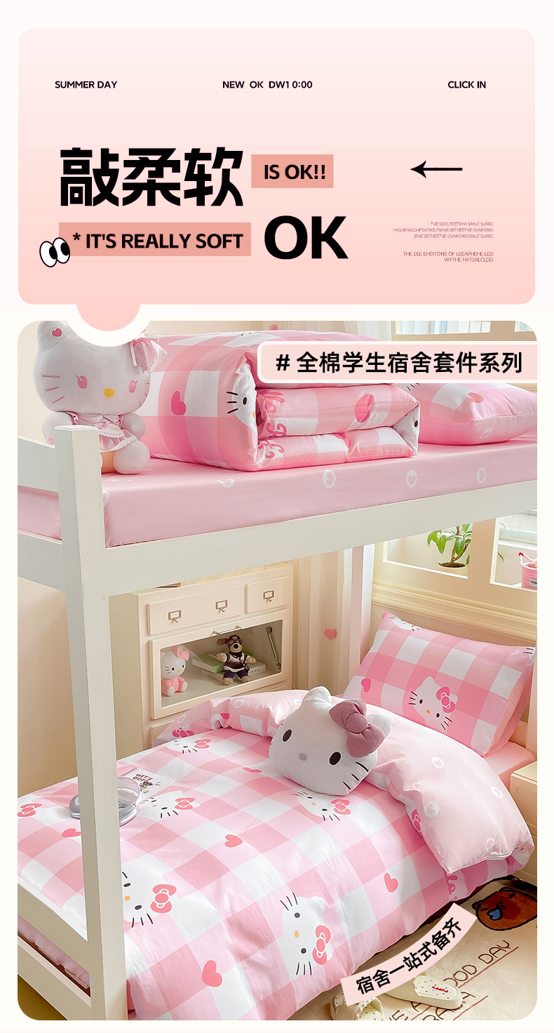 当前位置: 91家纺网 > 商品网购 > 床品套件 > 三件套 > 博雅 2025春夏新款三丽鸥全棉纯棉卡通学生宿舍三件套上下铺三件套-小版 大粉格KT猫