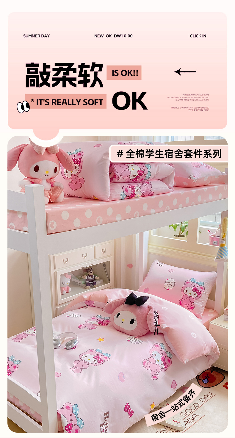 当前位置: 91家纺网 > 商品网购 > 床品套件 > 三件套 > 博雅 2025春夏新款三丽鸥全棉纯棉卡通学生宿舍三件套上下铺三件套-小版 腮红KT