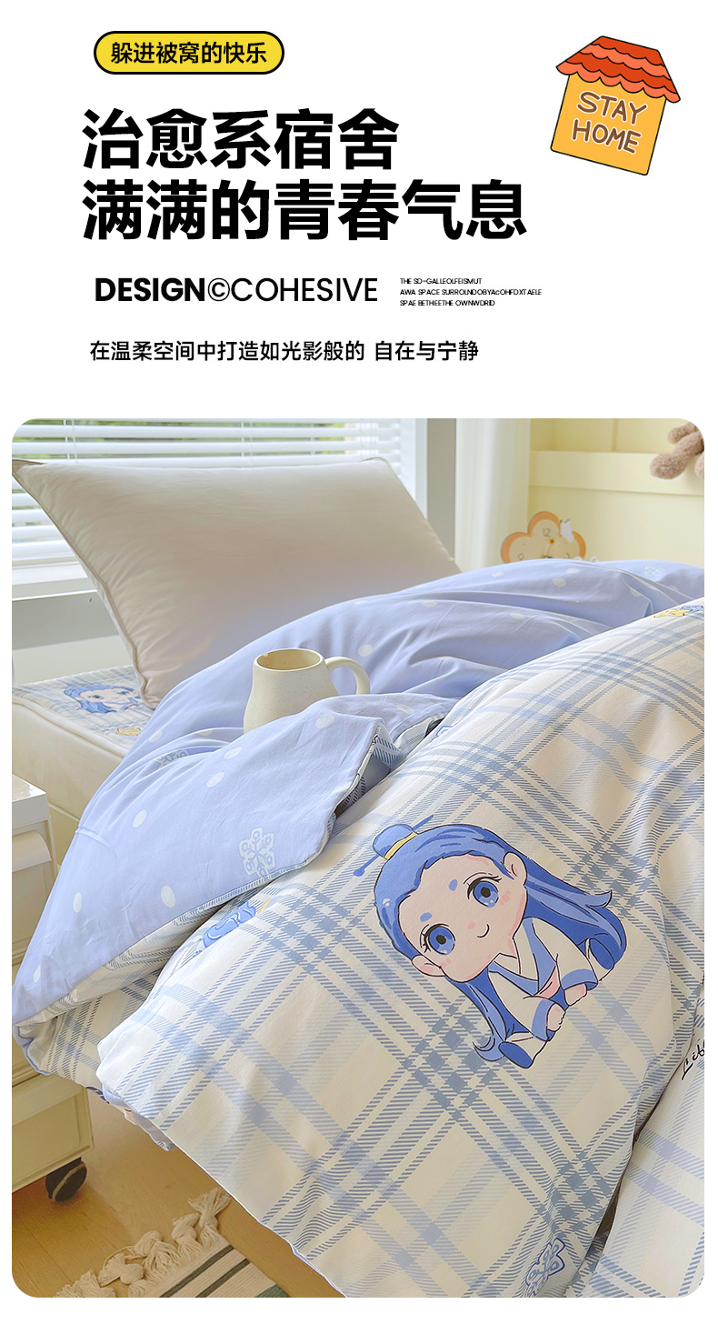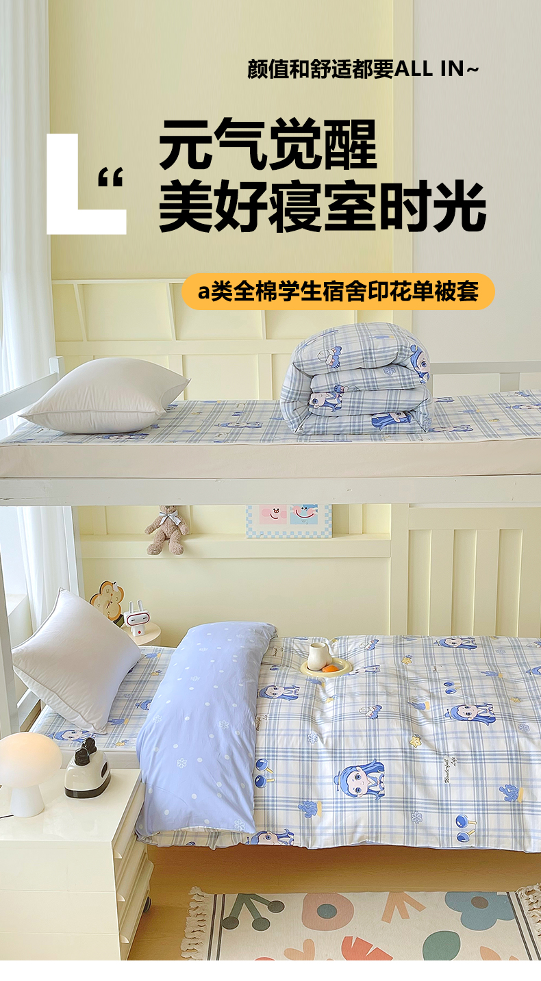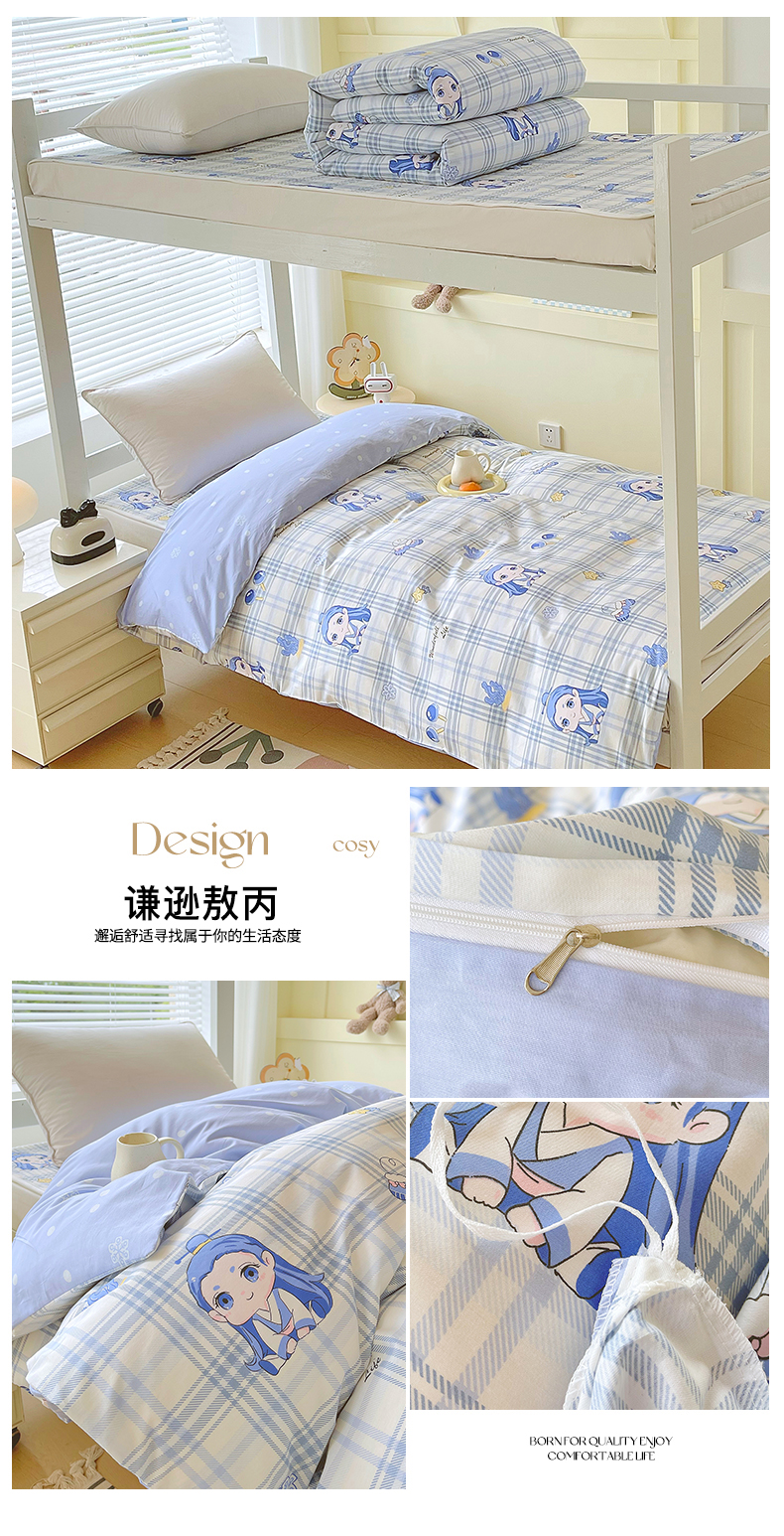 当前位置: 91家纺网 > 商品网购 > 床品套件 > 四件套 > 全棉普通四件套 > 金鑫汇家纺2025新款全棉纯棉宿舍印花学生宿舍上下铺三件套单被套 谦逊敖丙
