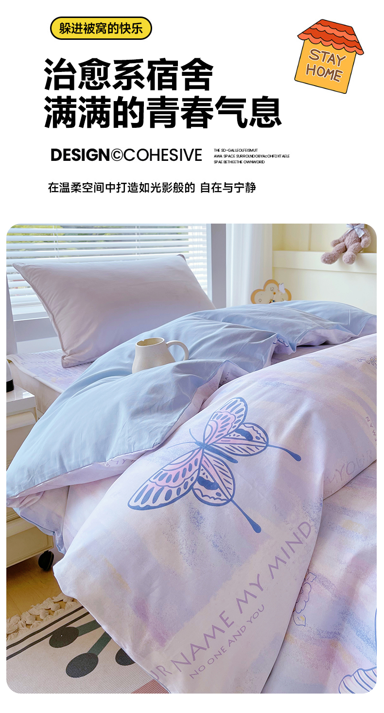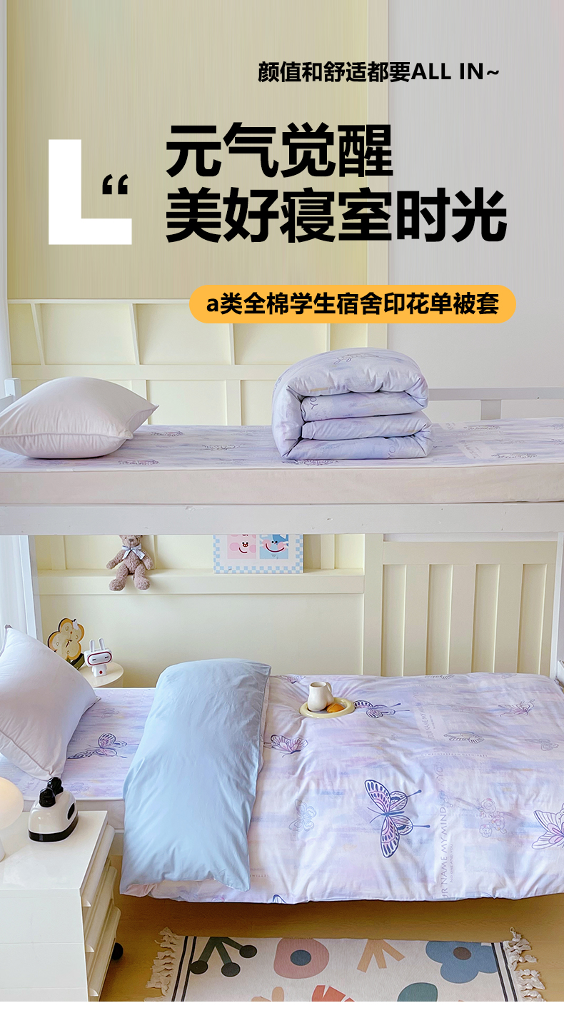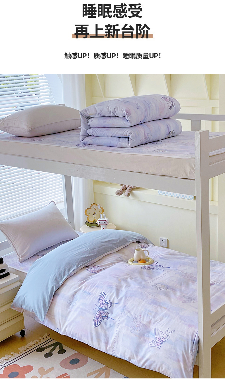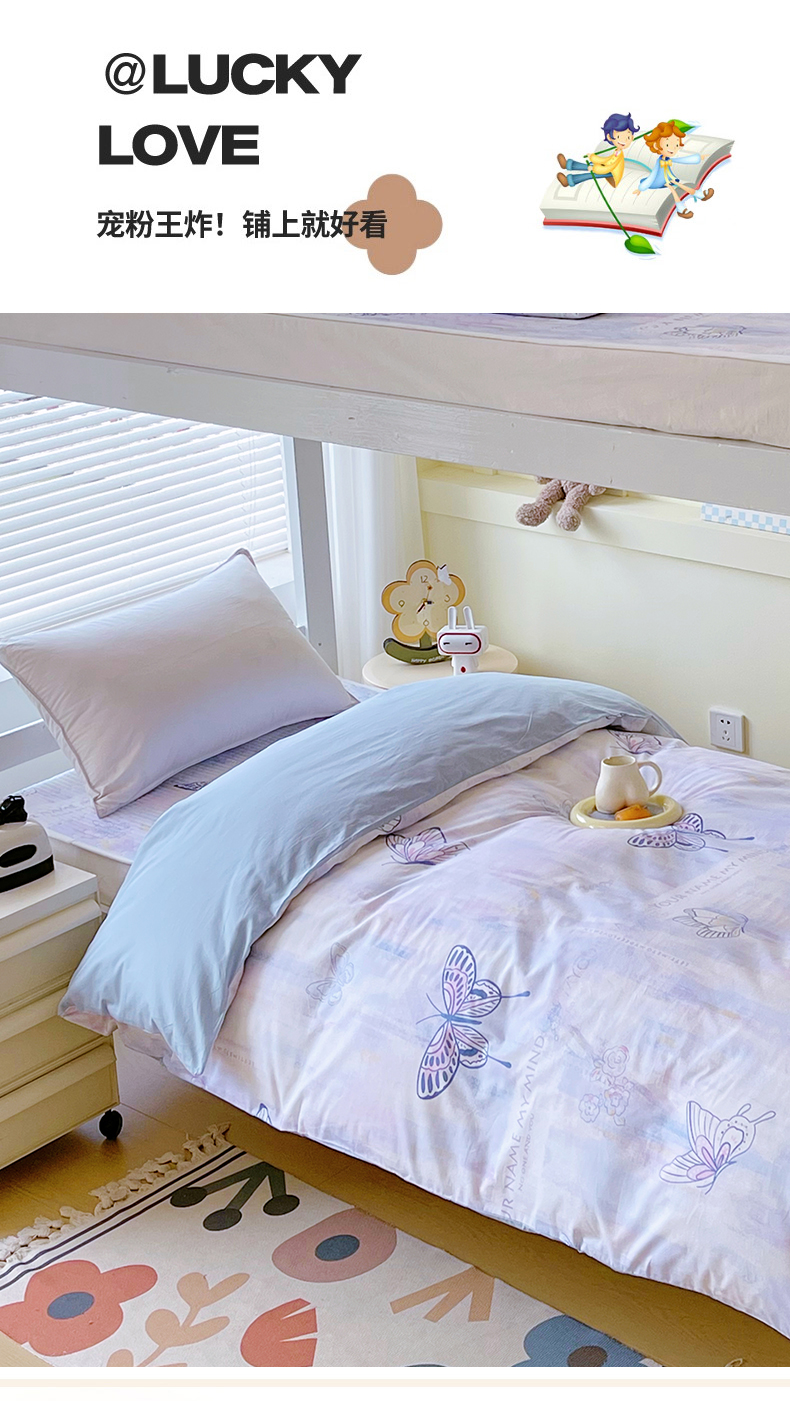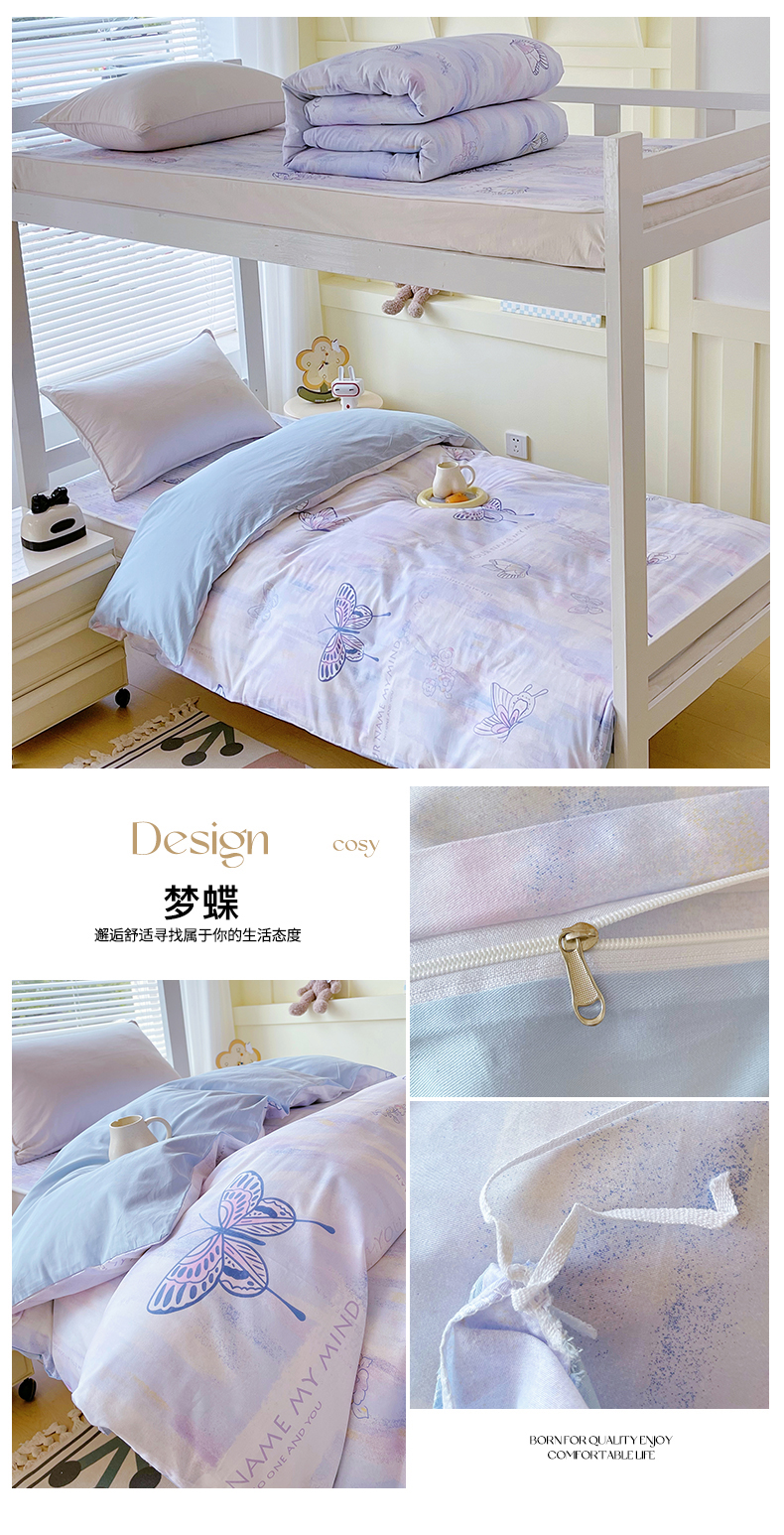 当前位置: 91家纺网 > 商品网购 > 床品套件 > 四件套 > 全棉普通四件套 > 金鑫汇家纺2025新款全棉纯棉宿舍印花学生宿舍上下铺三件套单被套 梦蝶