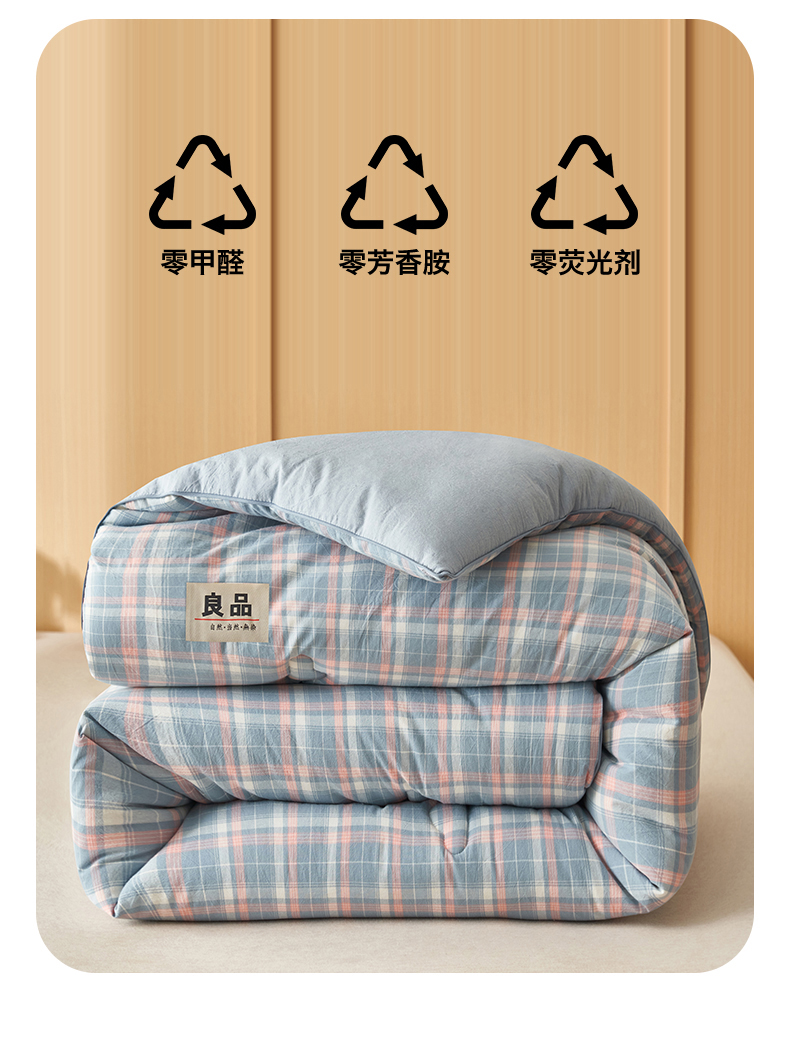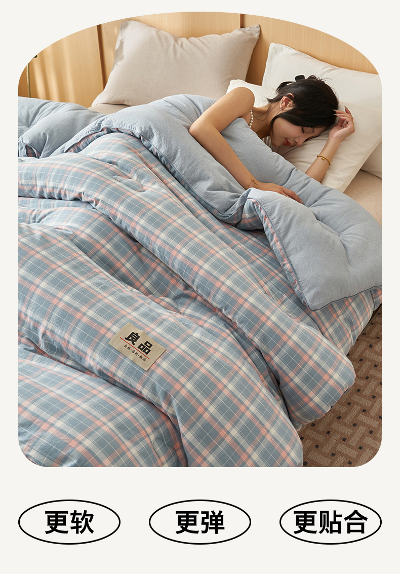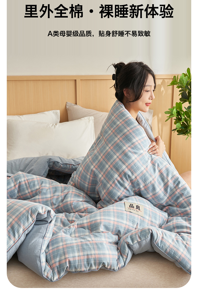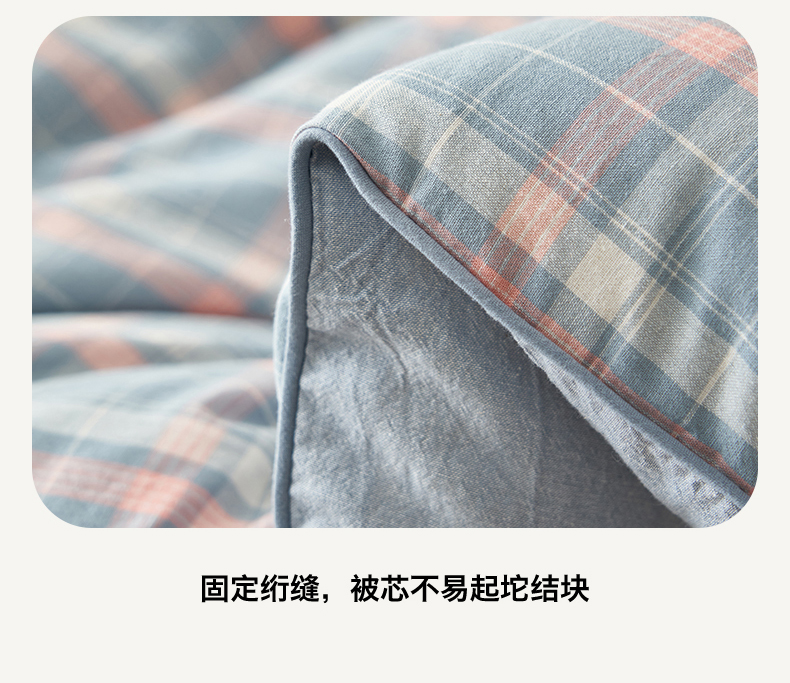 恬思语家纺 2025秋冬新款色织格子里外全棉棉花冬被被子被芯 洛林蓝