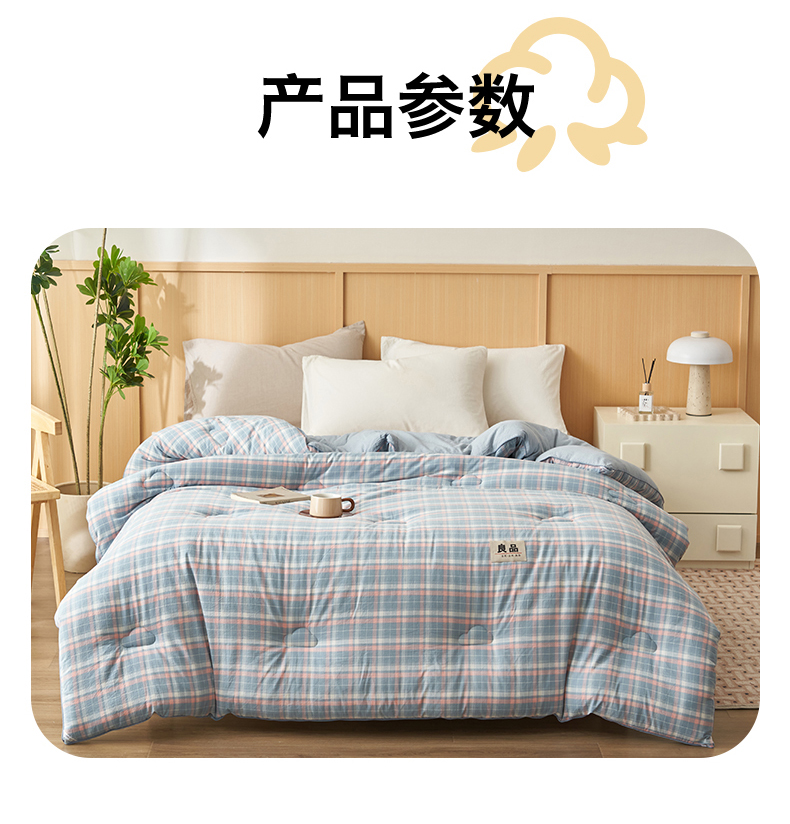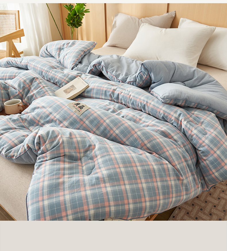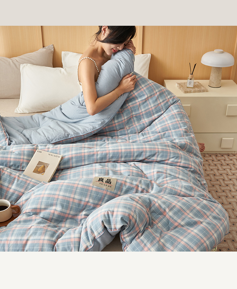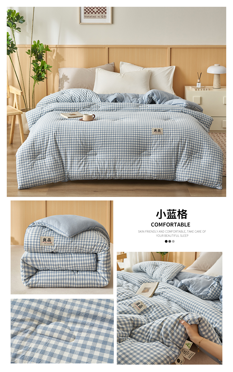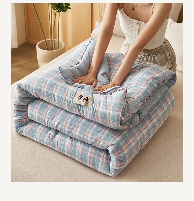 恬思语家纺 2025秋冬新款色织格子里外全棉棉花冬被被子被芯 洛林蓝