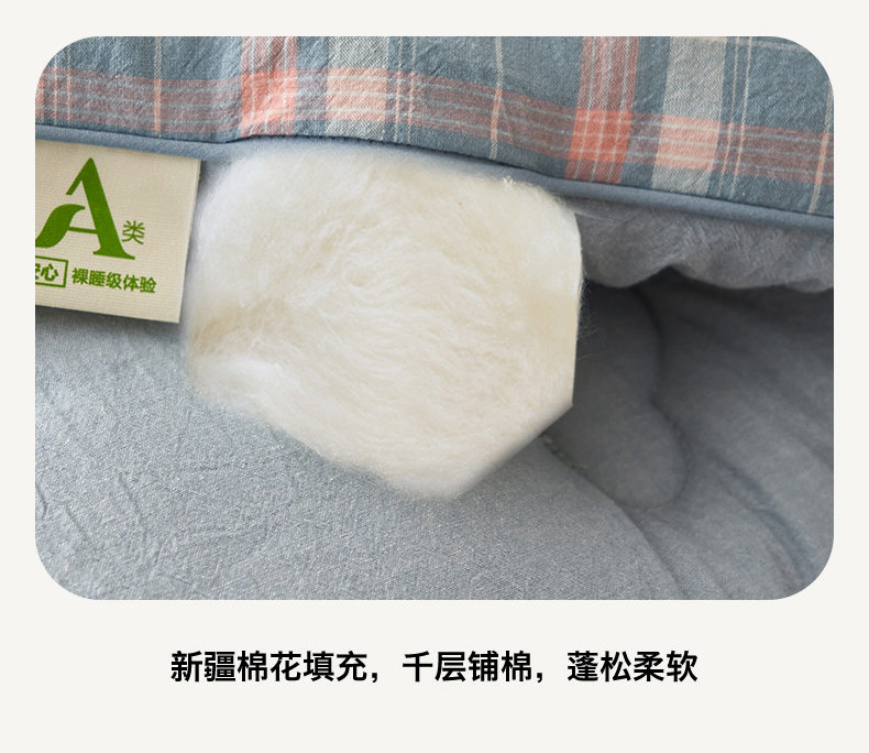 商品名称:恬思语家纺 2025秋冬新款色织格子里外全棉棉花冬被被子被芯 洛林蓝