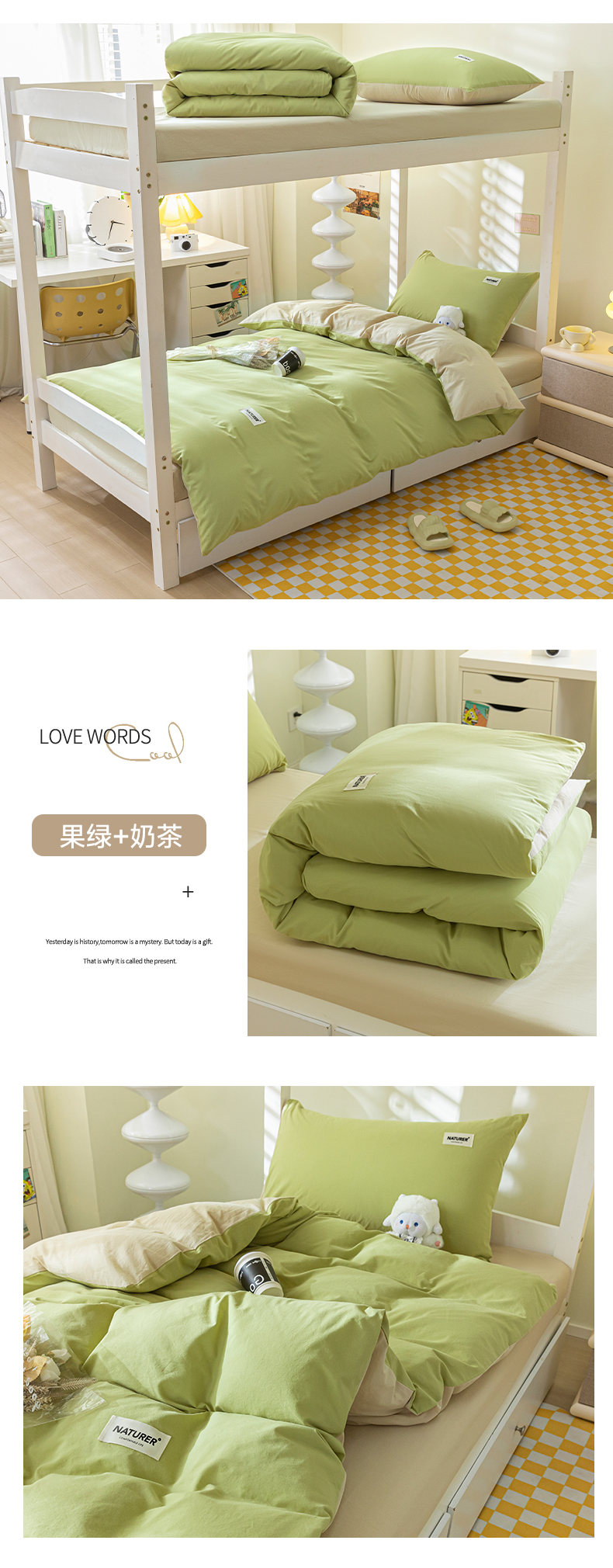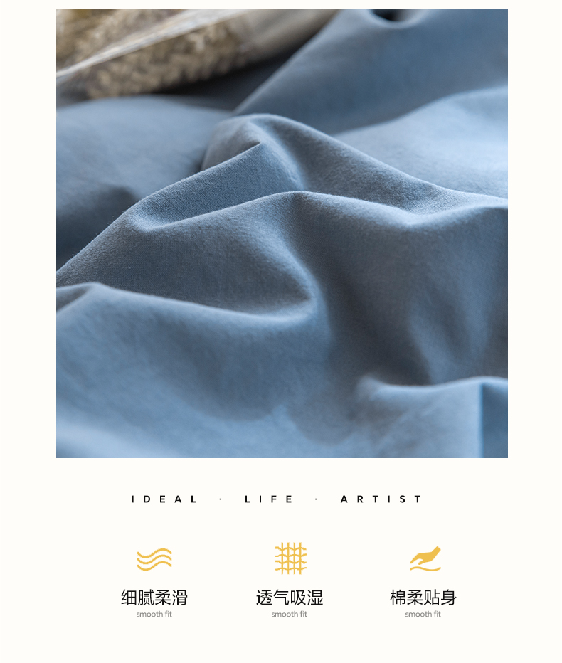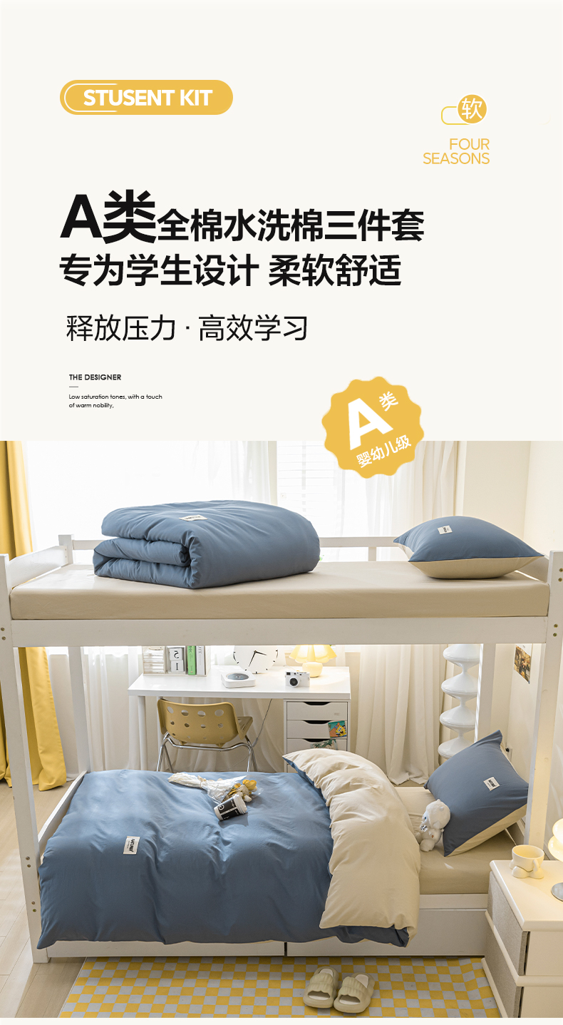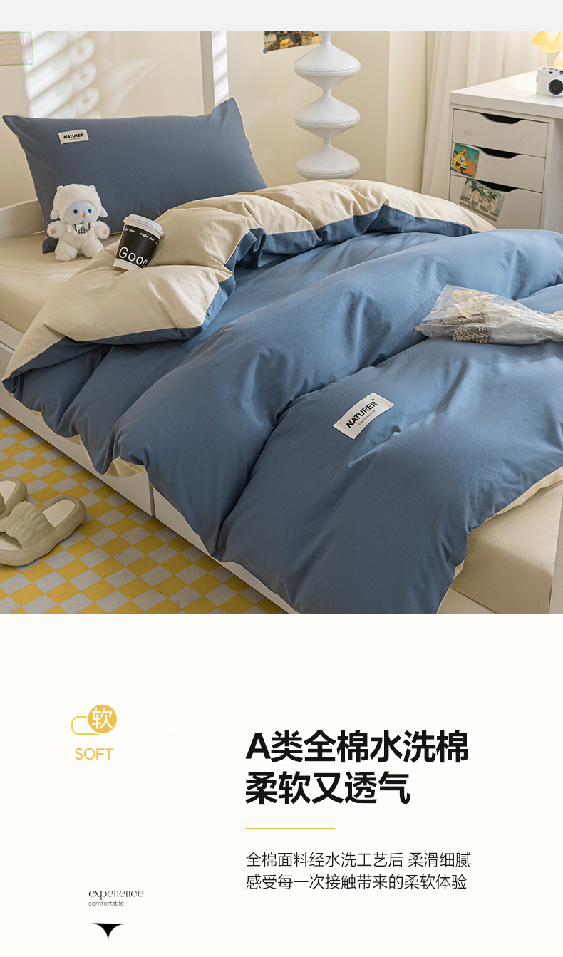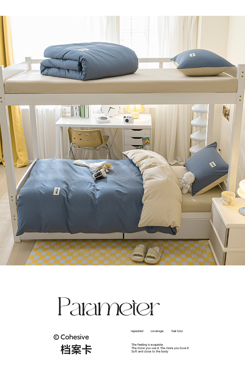 佳汐蓝家纺 2025新款A类全棉水洗棉学生三件套 贴标-宾利蓝+奶茶
