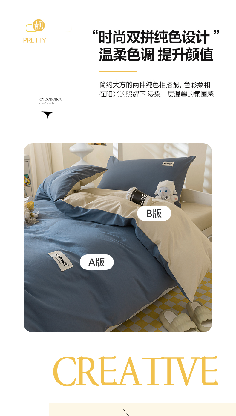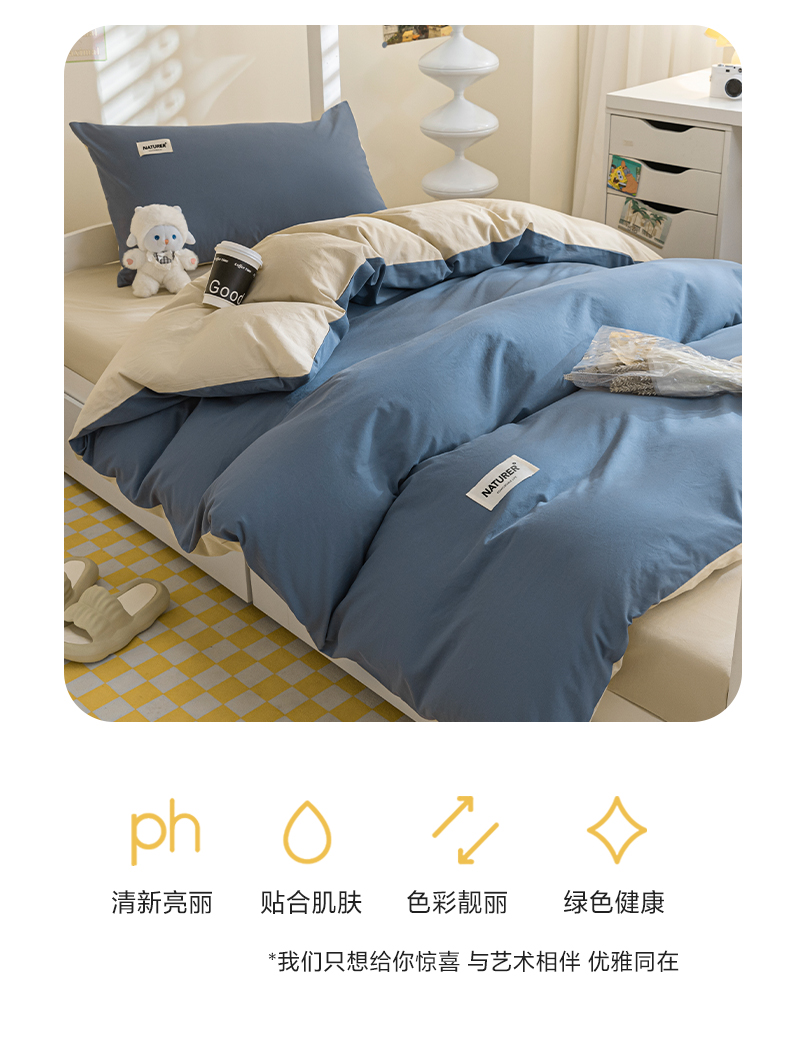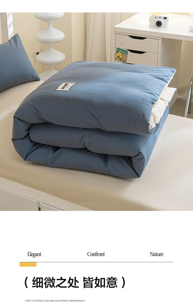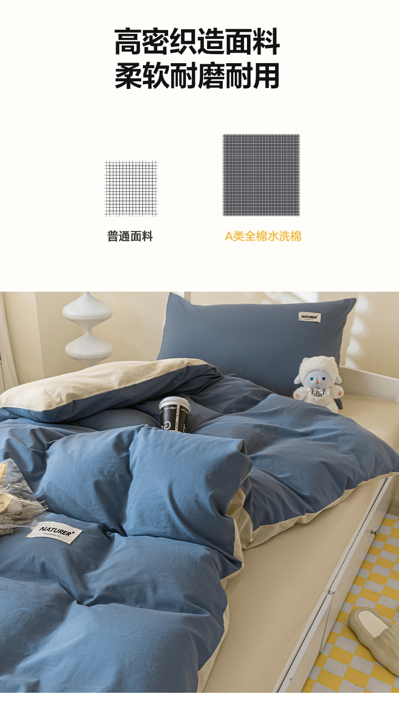商品名称:佳汐蓝家纺 2025新款A类全棉水洗棉学生三件套 贴标-宾利蓝+奶茶