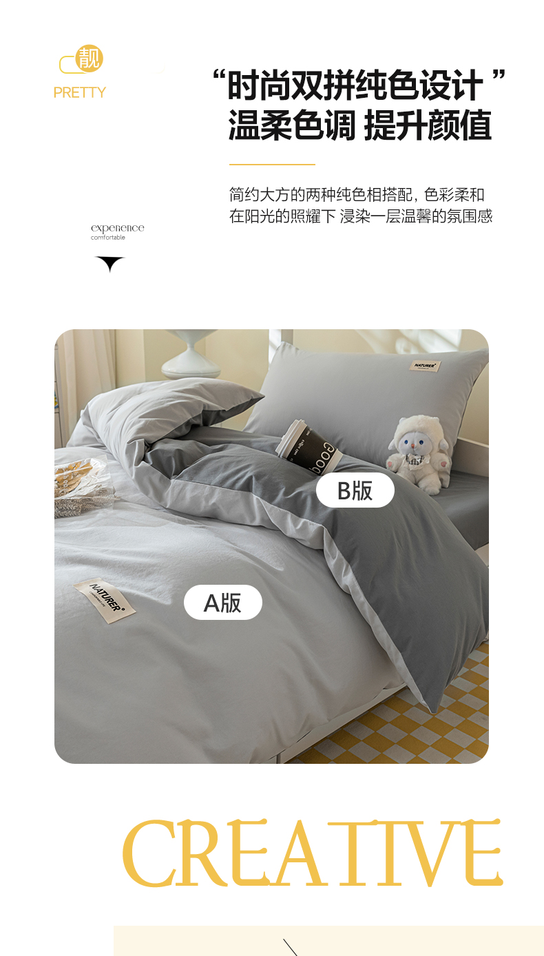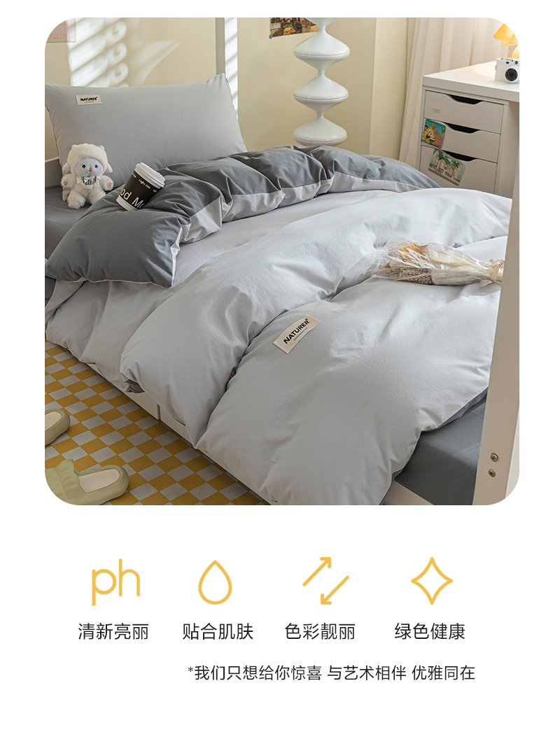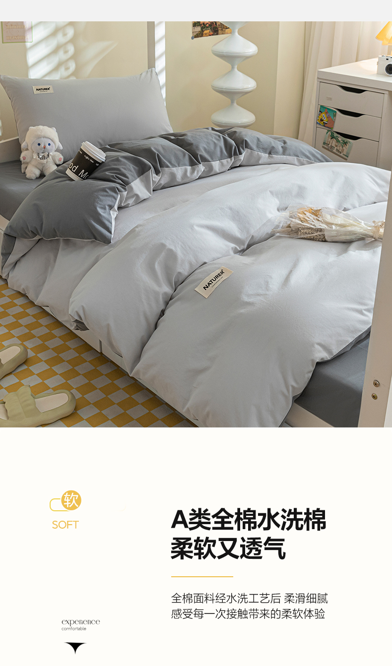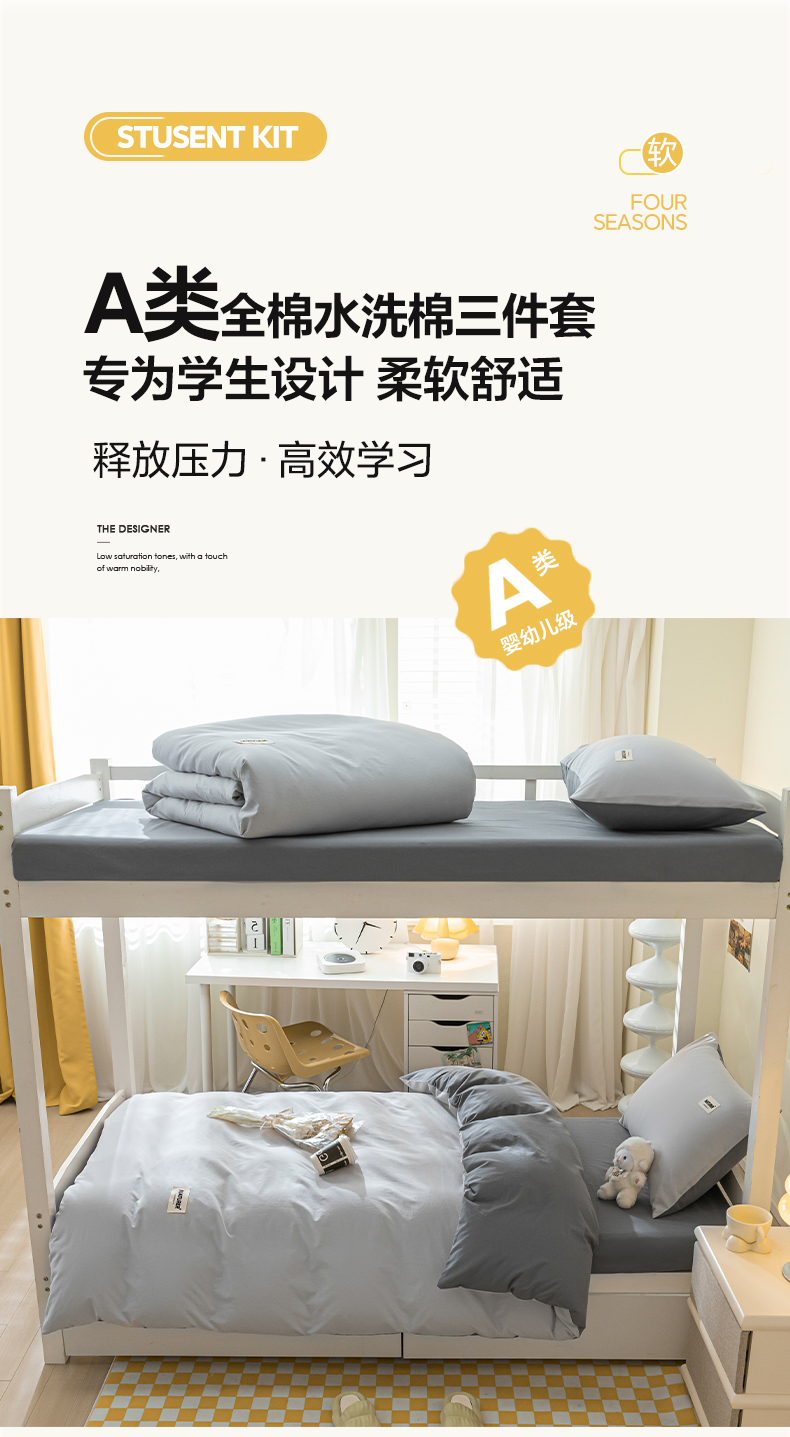 商品名称:佳汐蓝家纺 2025新款A类全棉水洗棉学生三件套 贴标-山灰+中灰
