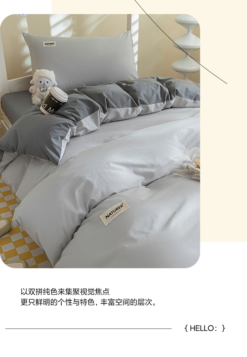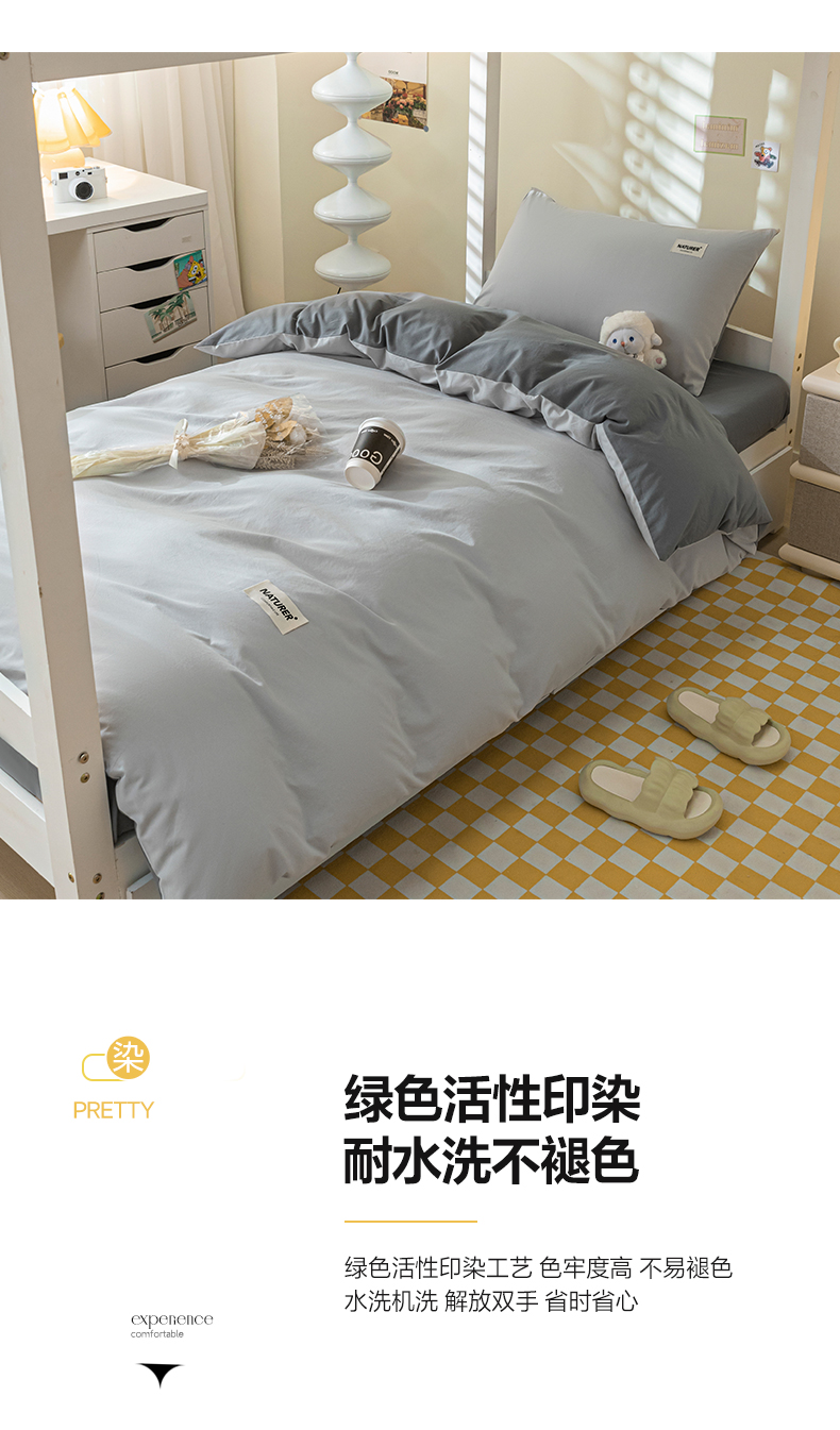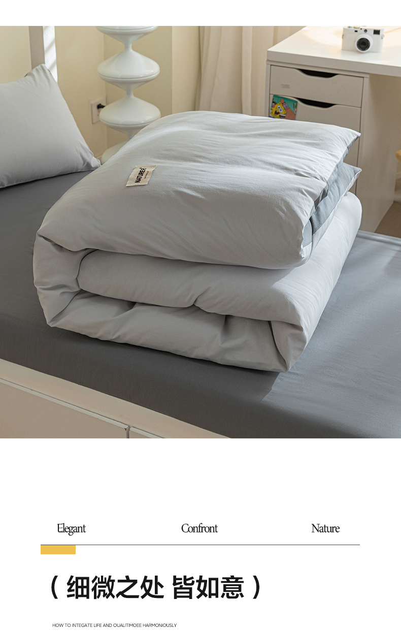 佳汐蓝家纺 2025新款A类全棉水洗棉学生三件套 贴标-山灰+中灰