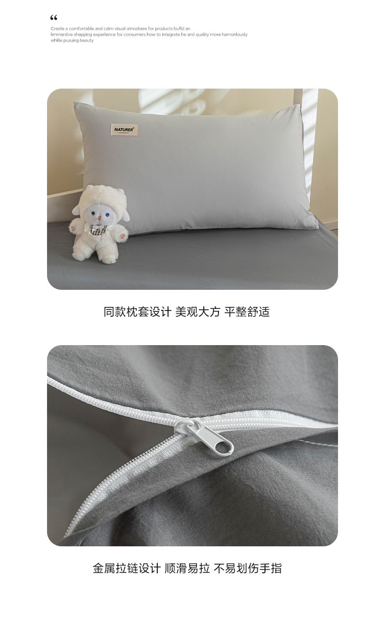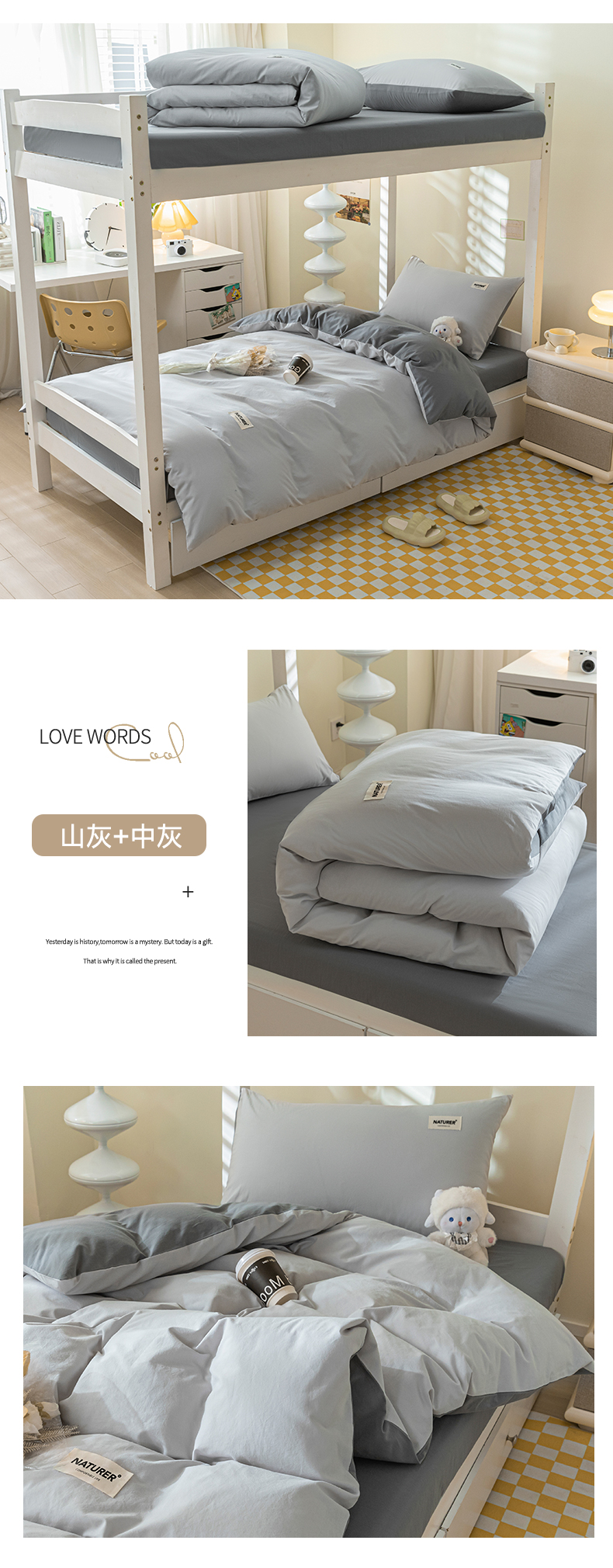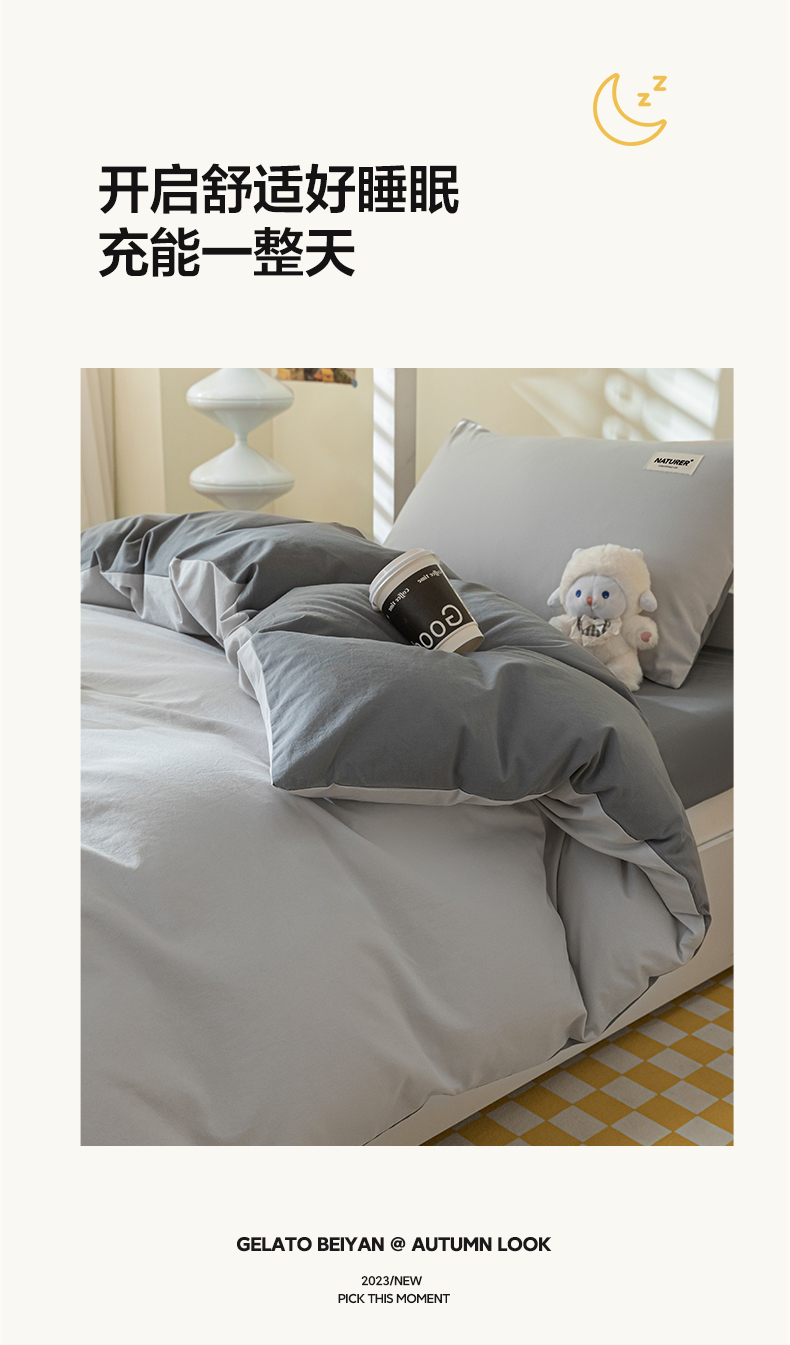佳汐蓝家纺 2025新款A类全棉水洗棉学生三件套 贴标-山灰+中灰