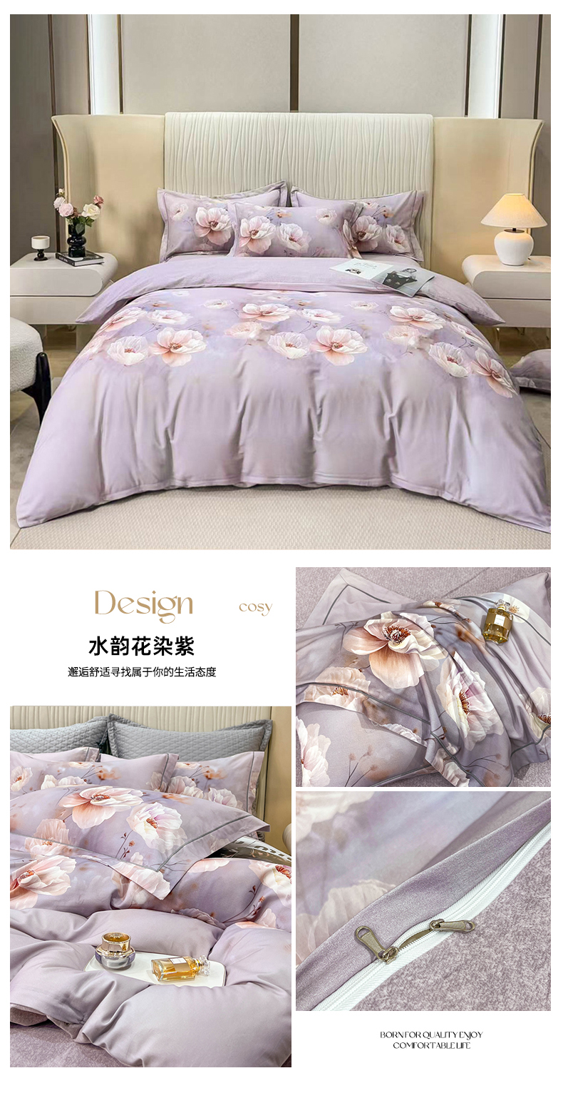凌鼎 2025新款100%全棉磨毛四件套数码印花加厚纯棉磨毛四件套 舒曼时光紫,舒曼时光紫
