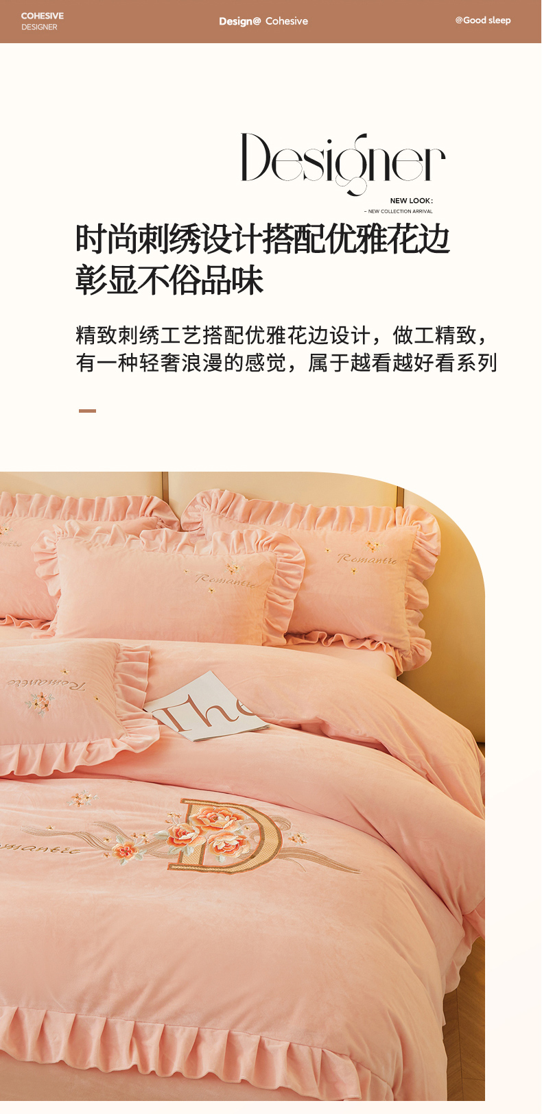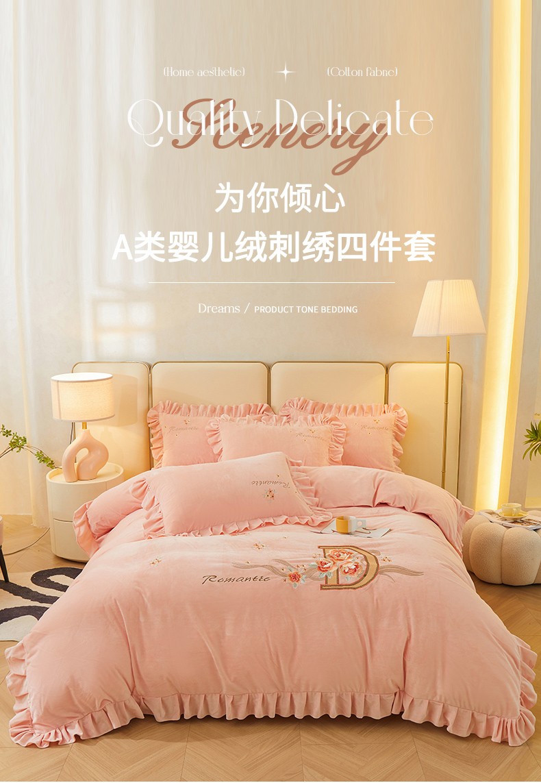 怡源梦 2025新款亲肤舒适A类婴儿绒刺绣四件套 花香云锦-芙蓉玉