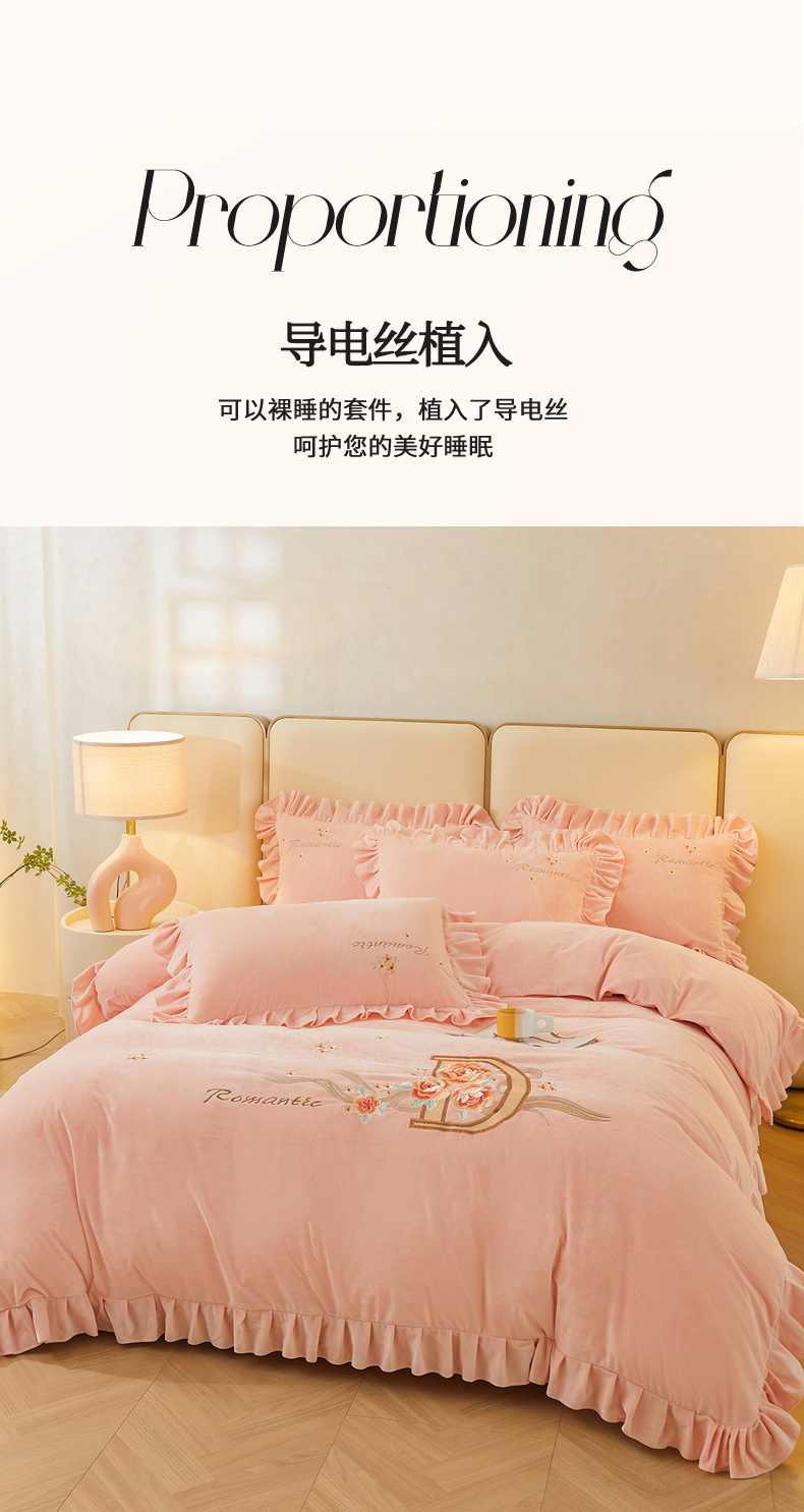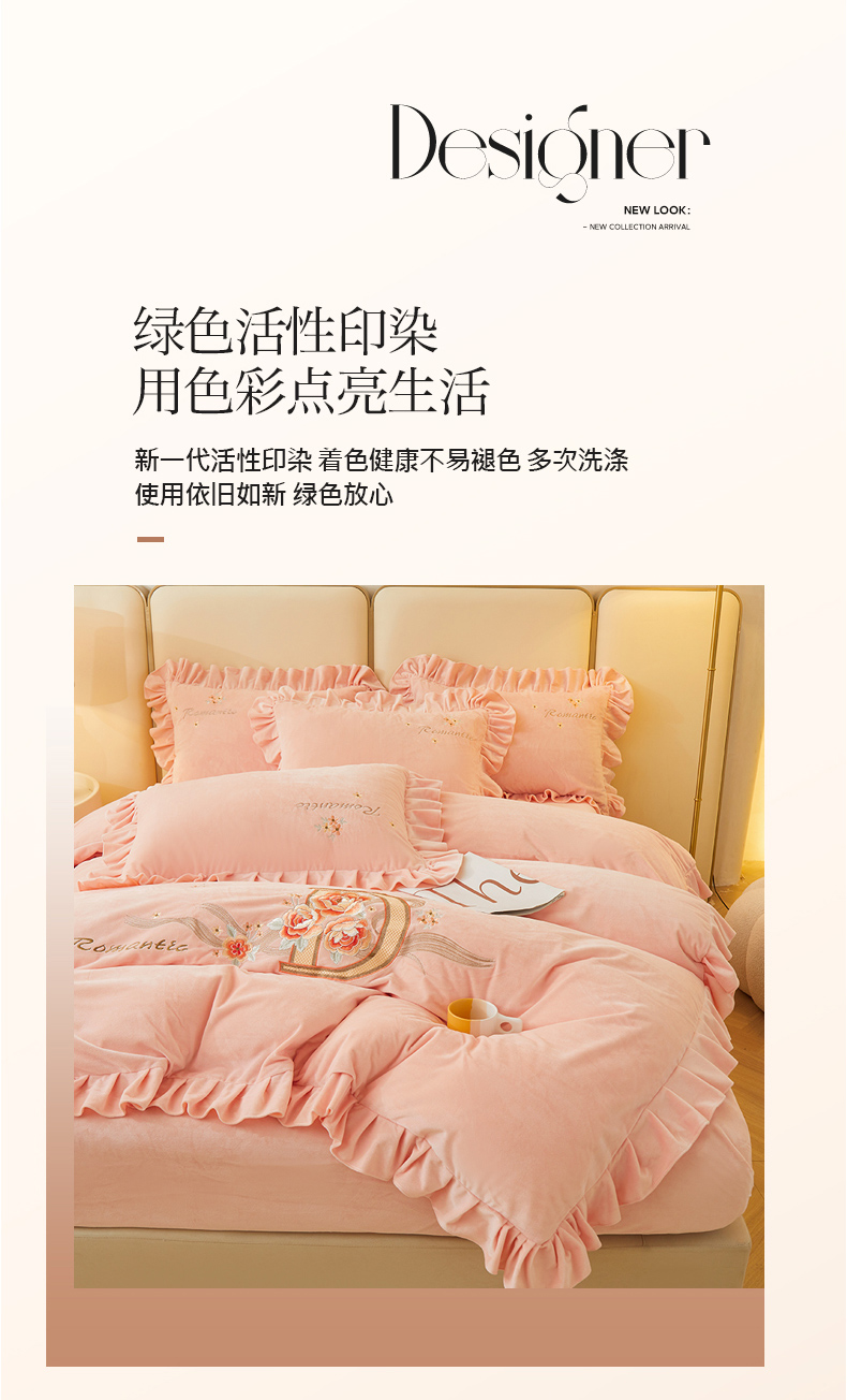 (总)怡源梦 2025新款牛奶绒床裙四件套-甜心公主系列,米白色,大红色,粉玉色,灰色,咖色,绿色,紫色