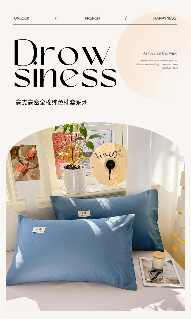 (总)眠博士 2025新款高支高密全棉纯色枕套系列