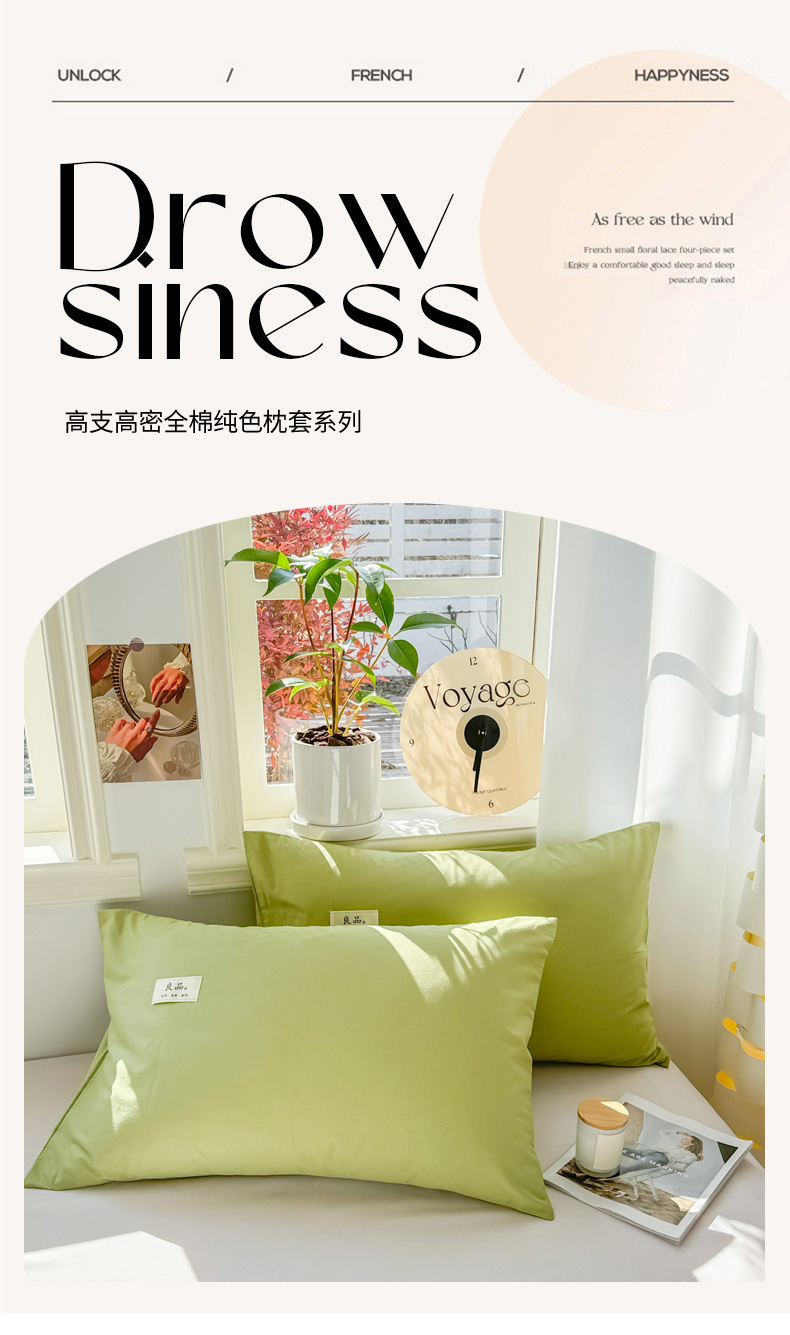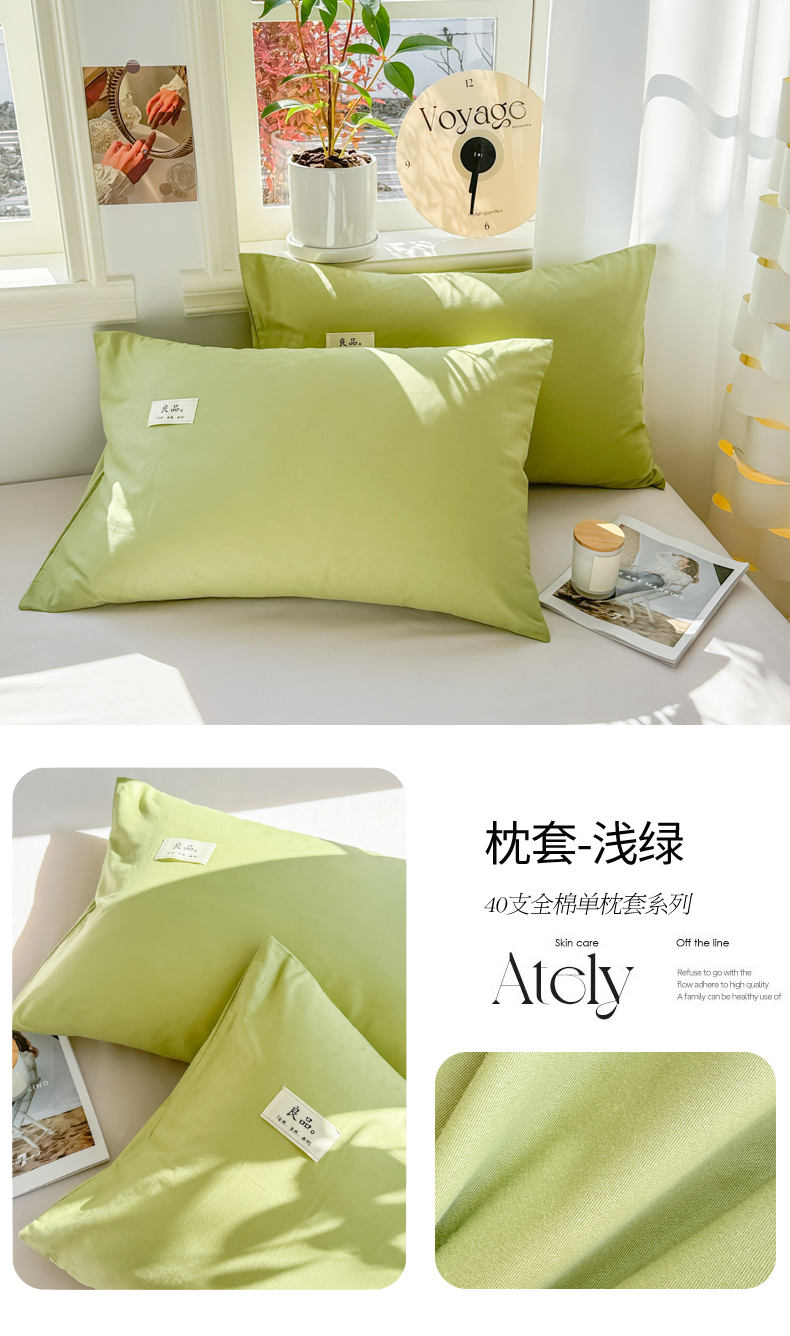 商品名称:眠博士 2025新款高支高密全棉纯色枕套系列 40支枕套-浅绿